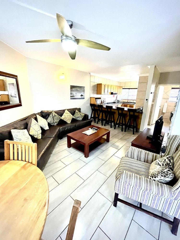 Friendly receptionist, neat and very spacious accommodation. The only thing i didn't like, even though it was convenient, was the auto vehicle gates on entrance and exit. It allows for just anyone to drive in and interfere with vehicles and holiday makers units. Even though we only stayed one night, we had a blast.....