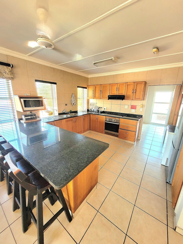 Spacious, paid for 2 sleeper with kids but had a unit that can sleep 5. Under the staircase not very safe - can easily bump your head here. Be cautious, has a deep freezer which is good to keep your fishing bait and fish. Geyser water was dirty - tried calling after hours number and left a message and got no reply - emptied the geyser and it was fine