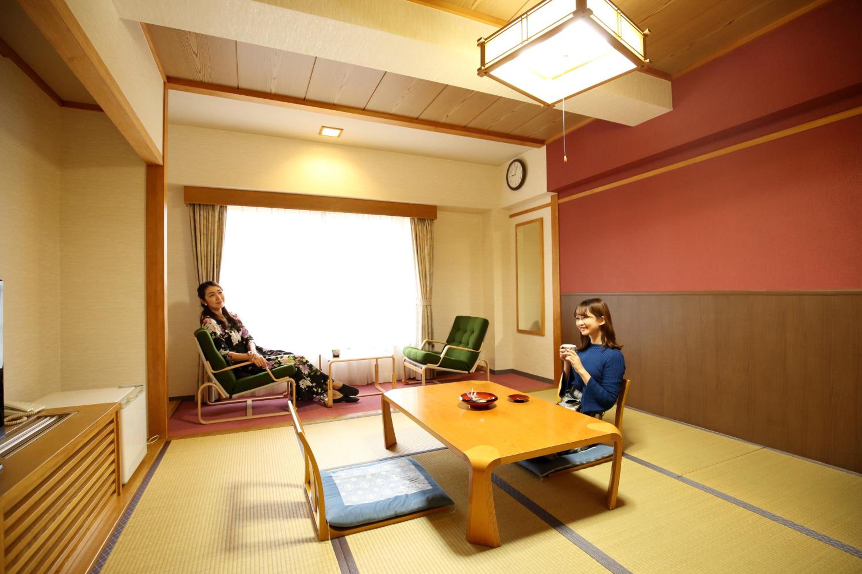 It was our first experience in a Japanese style room and an onsen, and the room was a delight. Comfortable futons impecably laid out while we had dinner, a lovely highgloss low table with comfortable seating. The tatami flooring was a delight to walk on. There is so much attention to the little details, even slippers ready to slip into in the toilet!