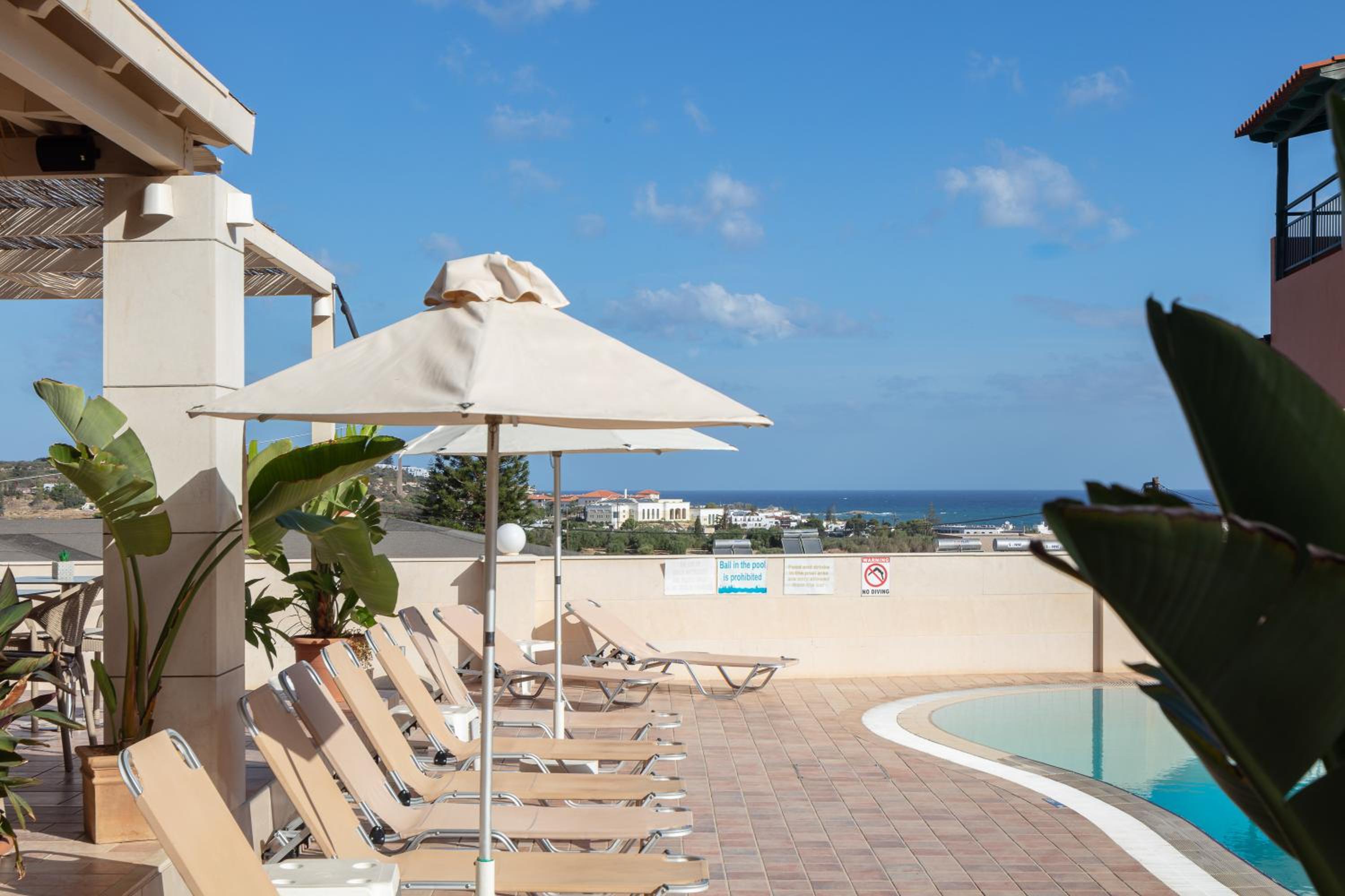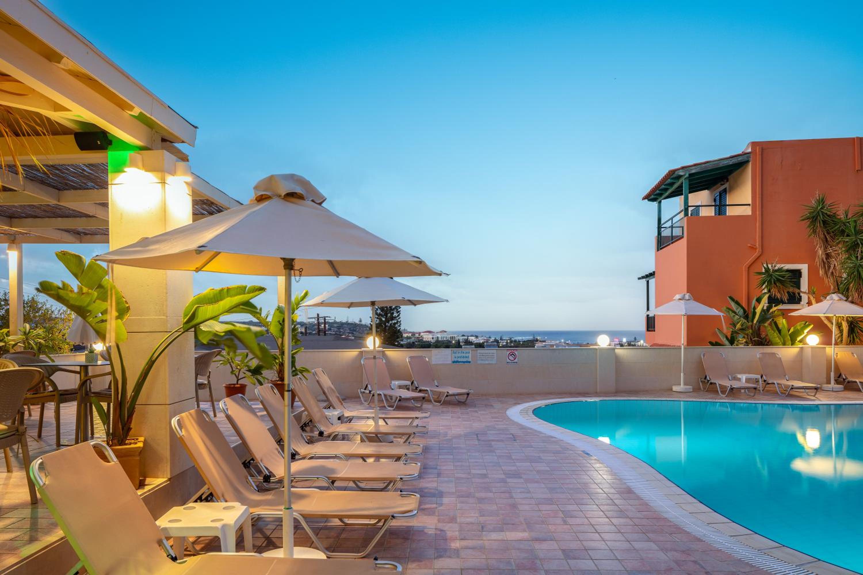 We arrived there early at the morning. The room was ready so it was possible to check in early. The Staff was very friendly. Specially George at the bar was very helpfull. The Pool was nice and clean, at the Poolbar you can enjoy the drinks from George. We stayed only three nights and it was a wonderfull experience. The Price was the best what we found in Chersonissos . Hope to come again