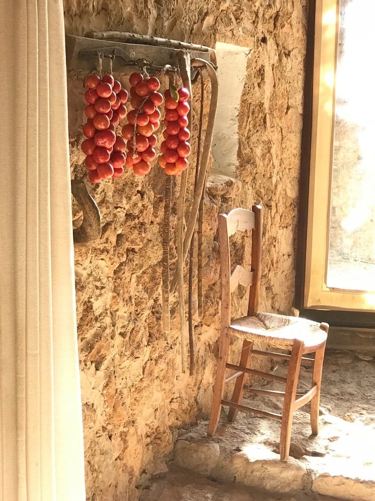 The old olive press inside the house gets used as a dining area in the winter and it looks very romantic inside.
