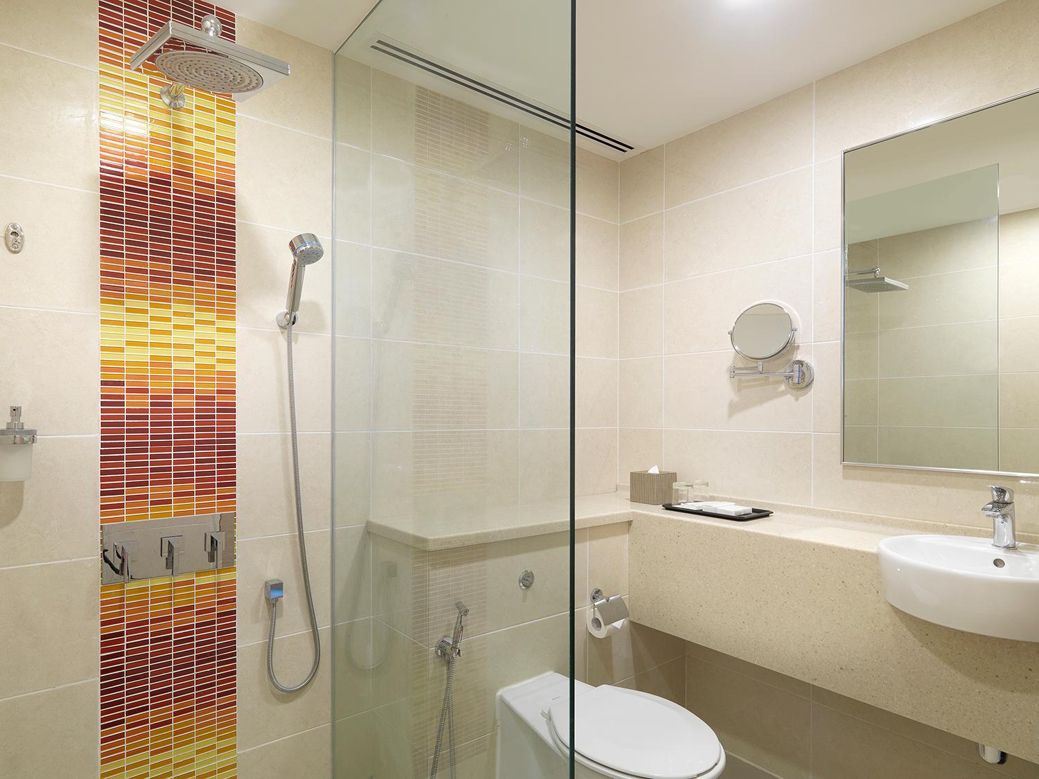 Indulge in rain shower facilities and complimentary toiletries in the en suite bathroom for a refreshing experience before your next flight. Book your transit stay today for a seamless travel experience.