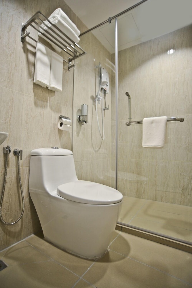 Clean hotel. Bath towels, hand towels and bath mat. Soap dispenser in shower. Soap bar also provided. Air conditioner, fan, hot water and wifi work well. Don’t forget to flick the switch outside the bathroom to activate the air conditioner and hot water. Water bottles provided. Also water dispenser (cold and hot) near reception with coffee and mugs. Saw umbrellas also. Good movies on TV. Tan (reception lady) very nice and polite. Do try Kuantan rd morning market, Cecil st food court, Friday night market van praagh and Ais Tingkap. Free CAT bus from Komtar around Georgetown, last stop at ferry. Then it starts again at the ferry to Komtar in a slightly different direction due to one war streets. Chowrasta market also has hawker stalls in the alley in the morning. Do not go to New Lane hawker food - overpriced and not the best in flavour. You will not be able to sit unless you buy a drink.