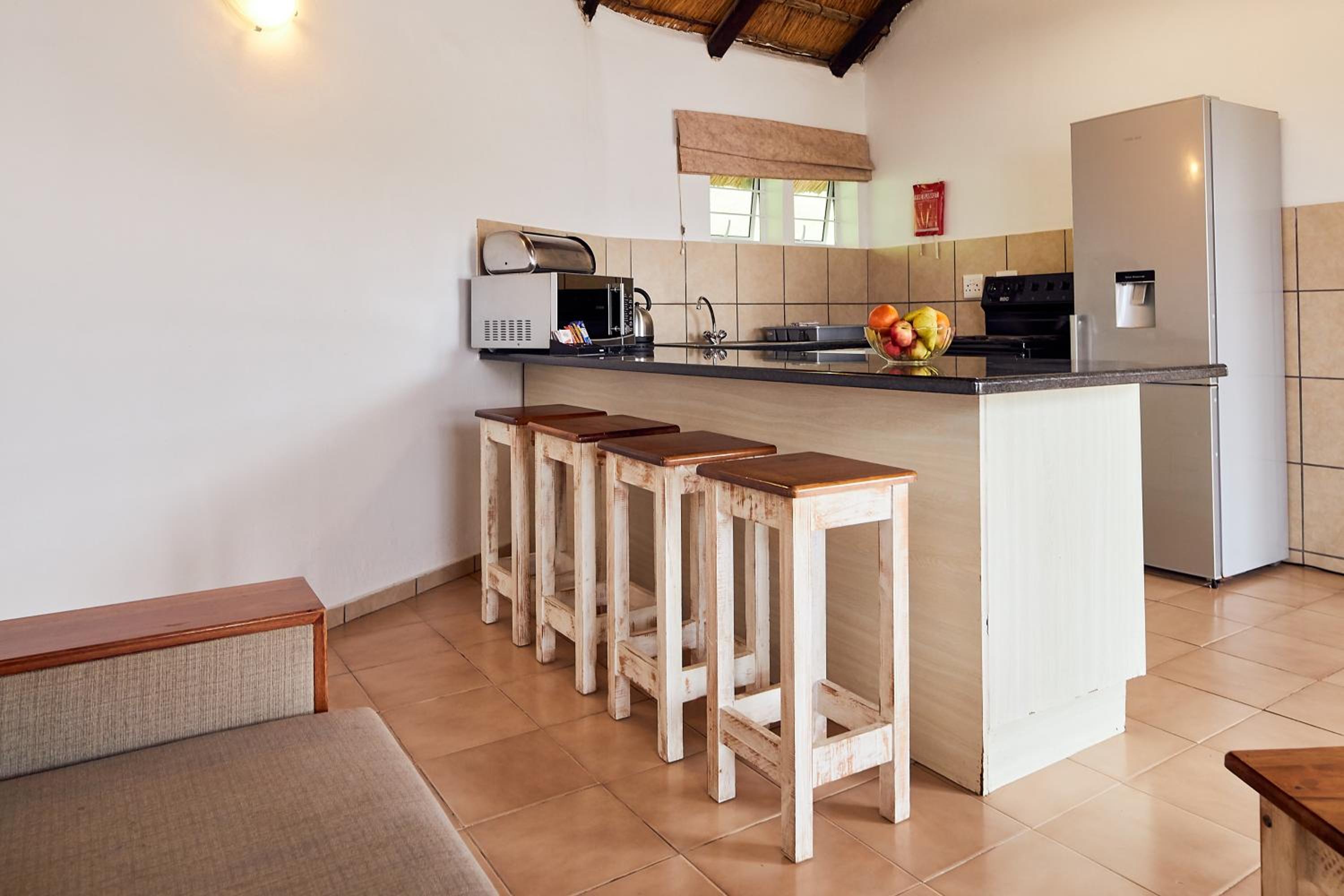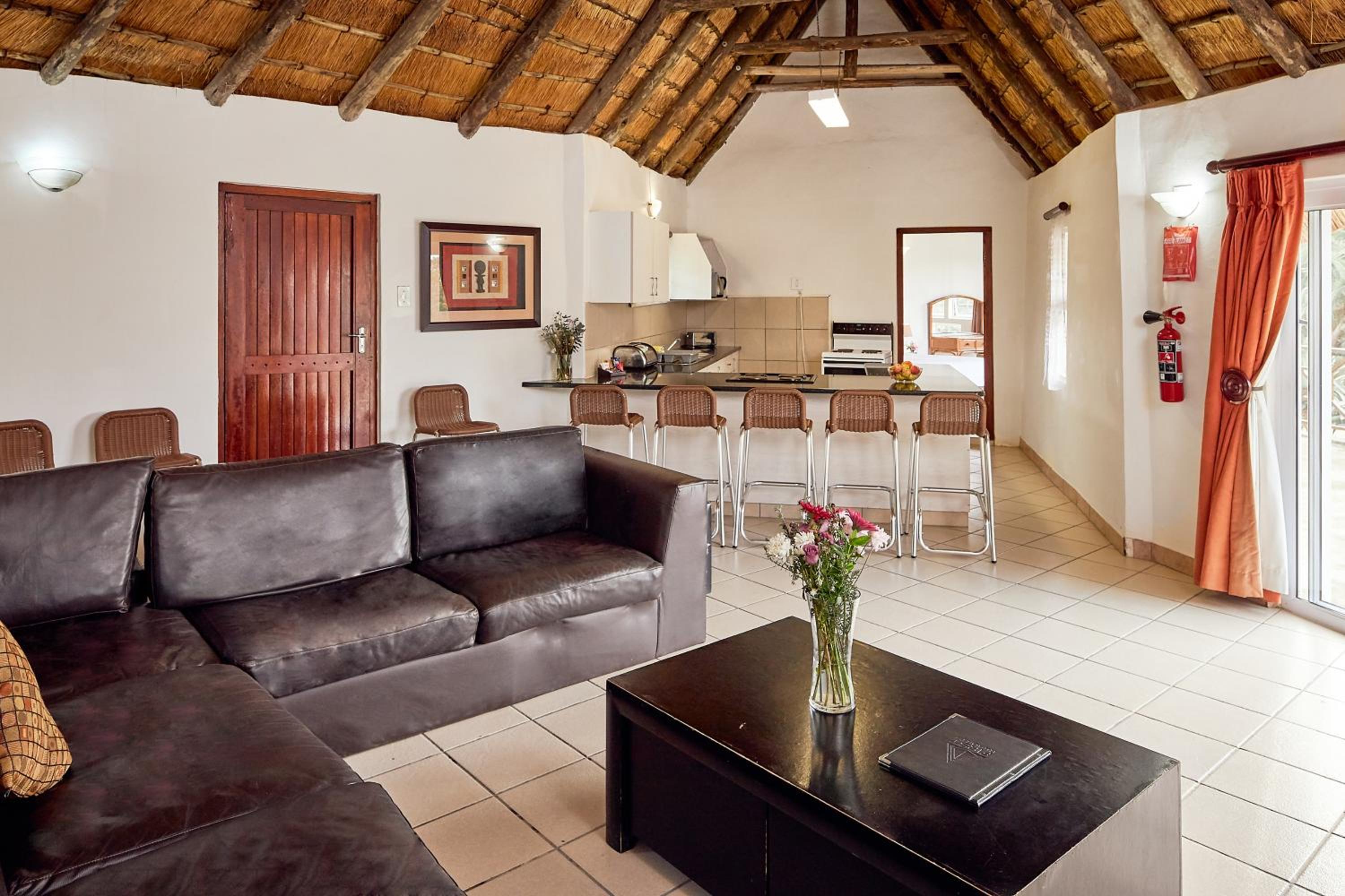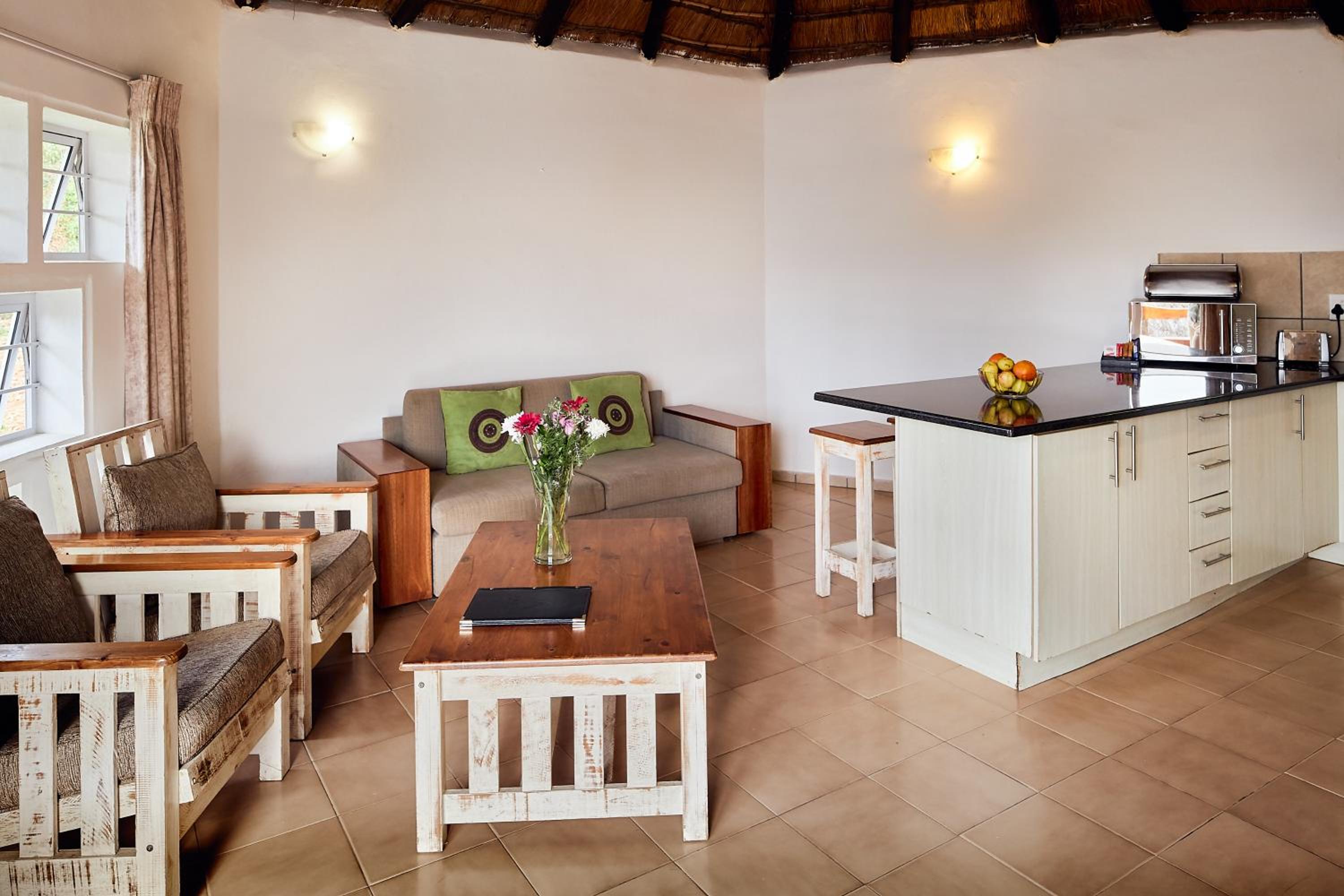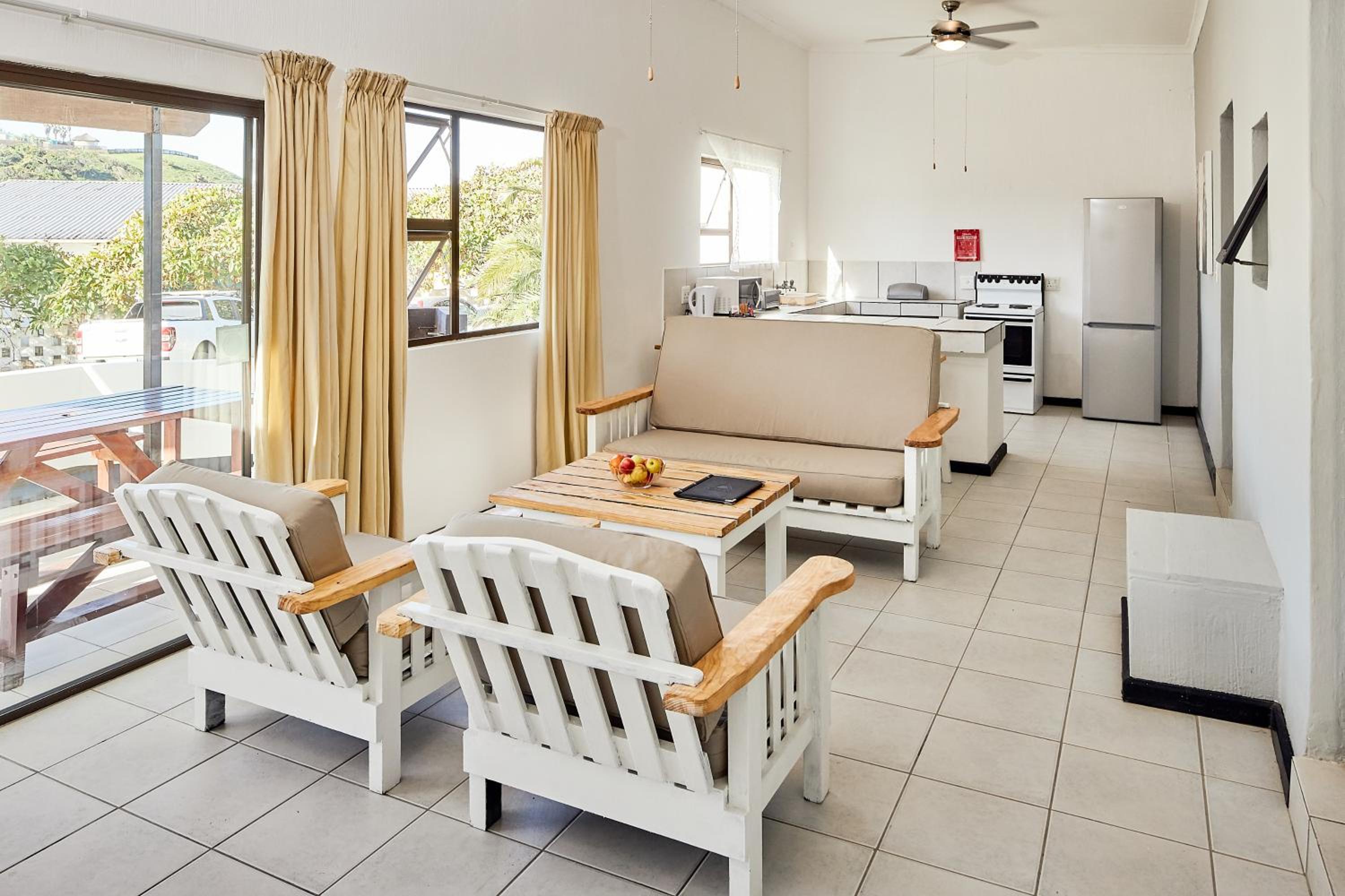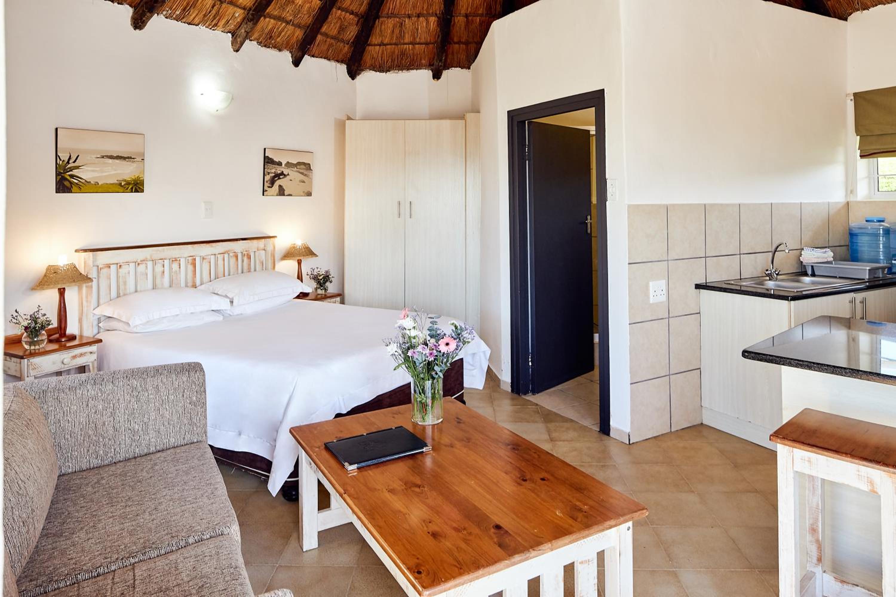 Experience comfort in our self-catering apartments with open plan kitchens, lounge areas, and thoughtful amenities like a double sofa sleeper couch, fan, and free toiletries.