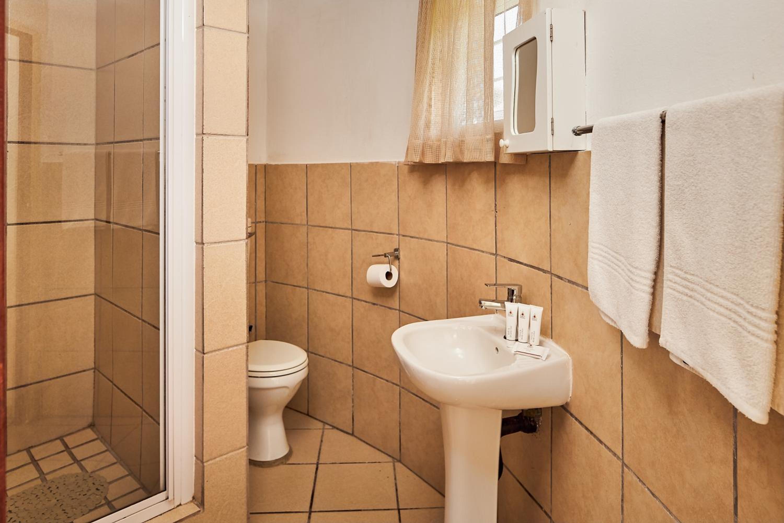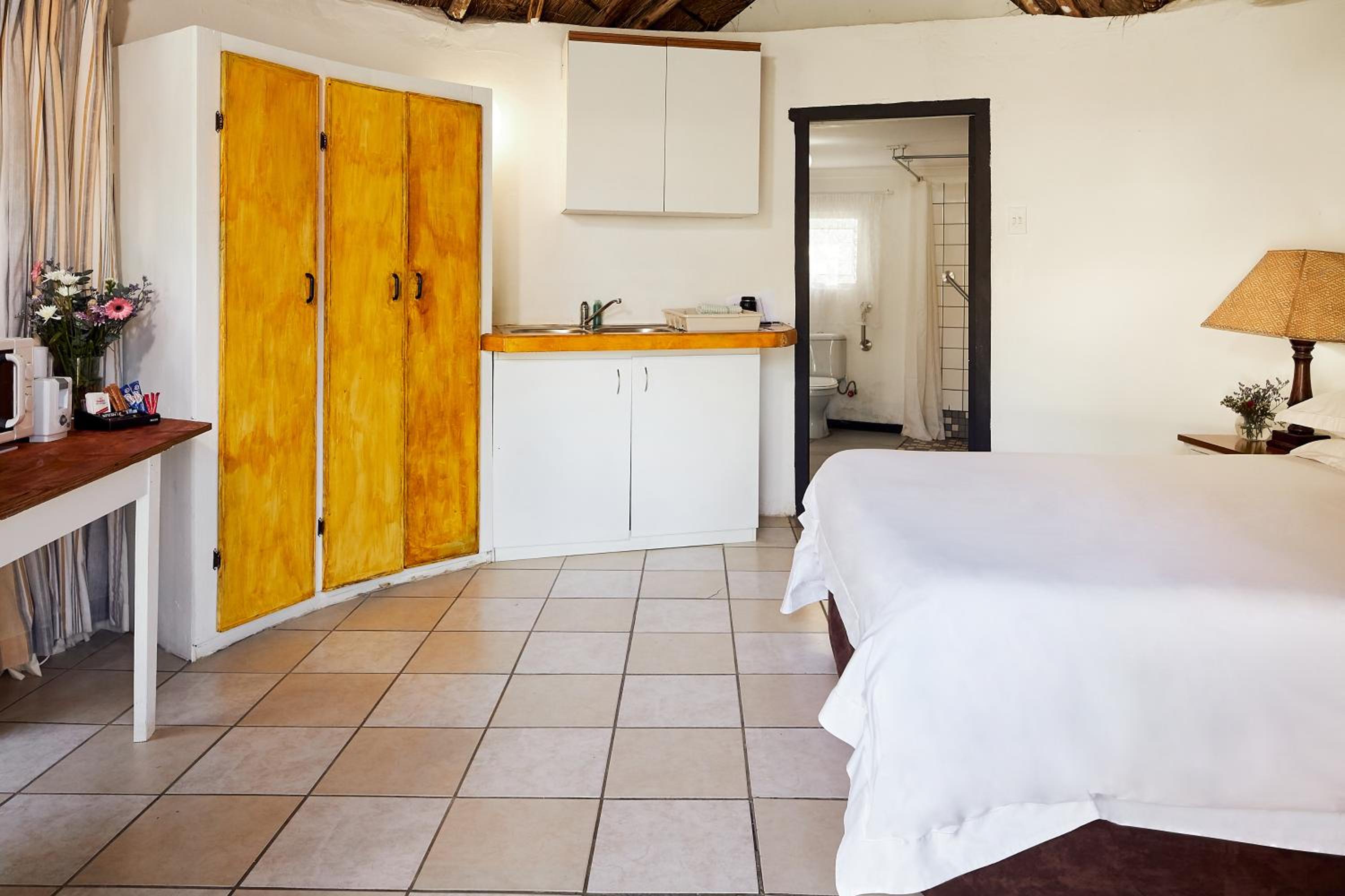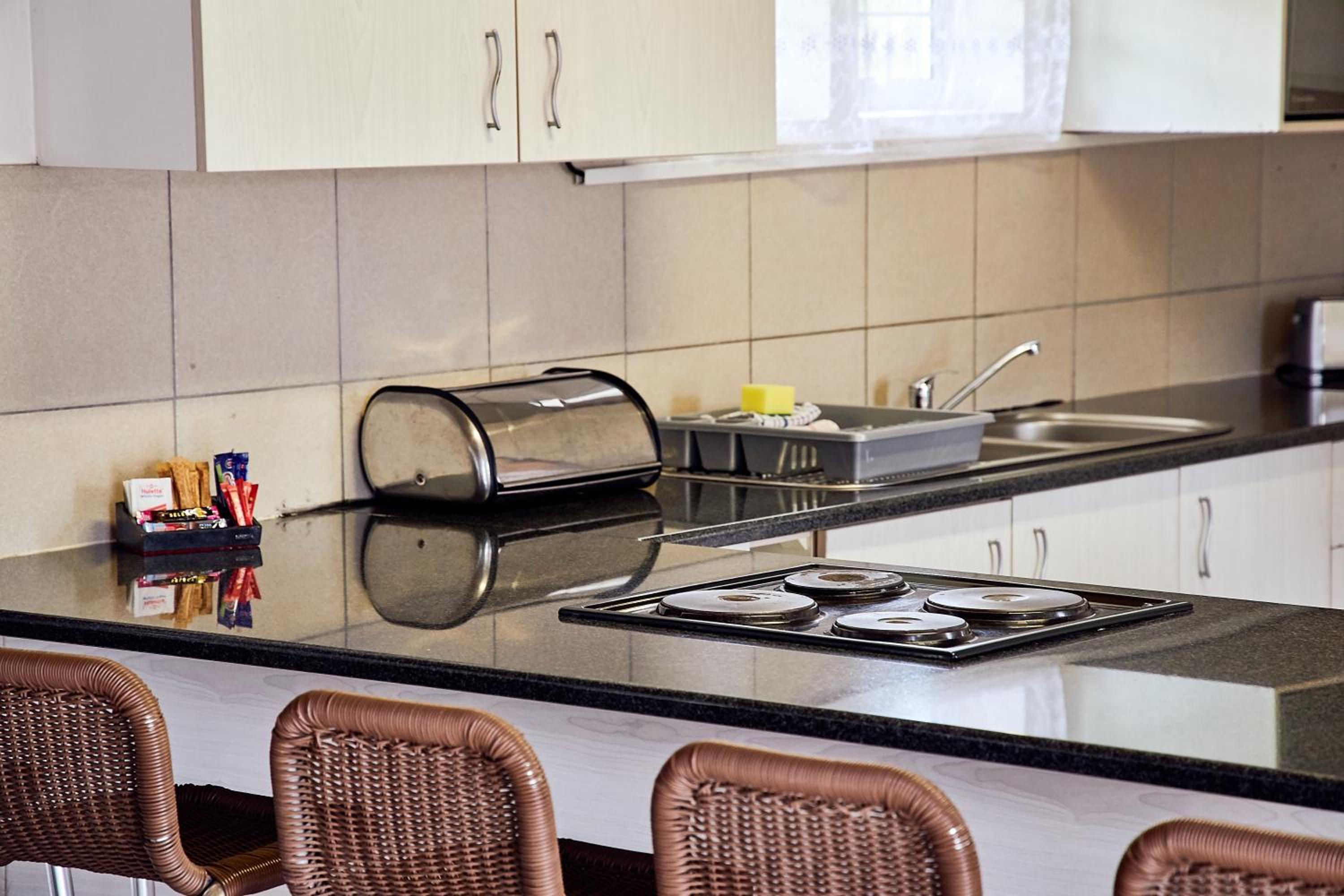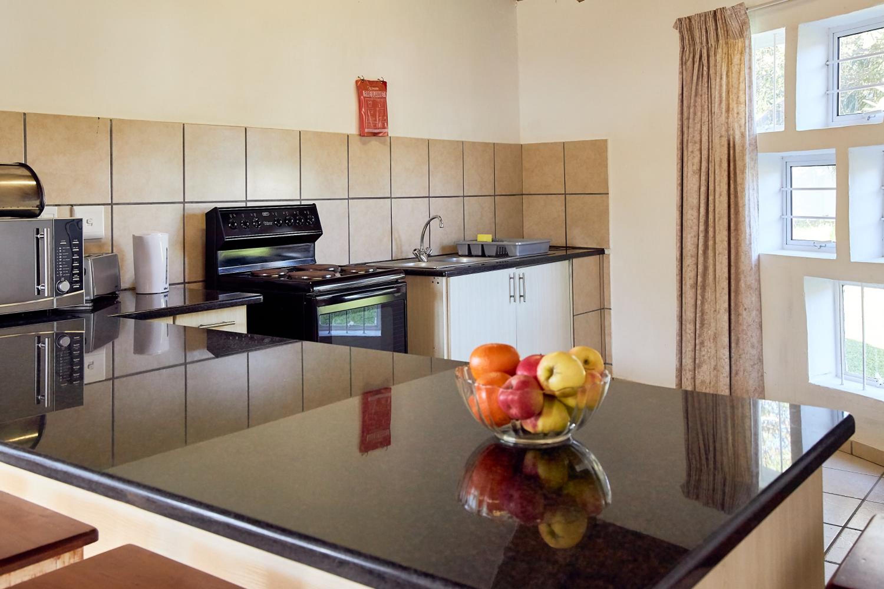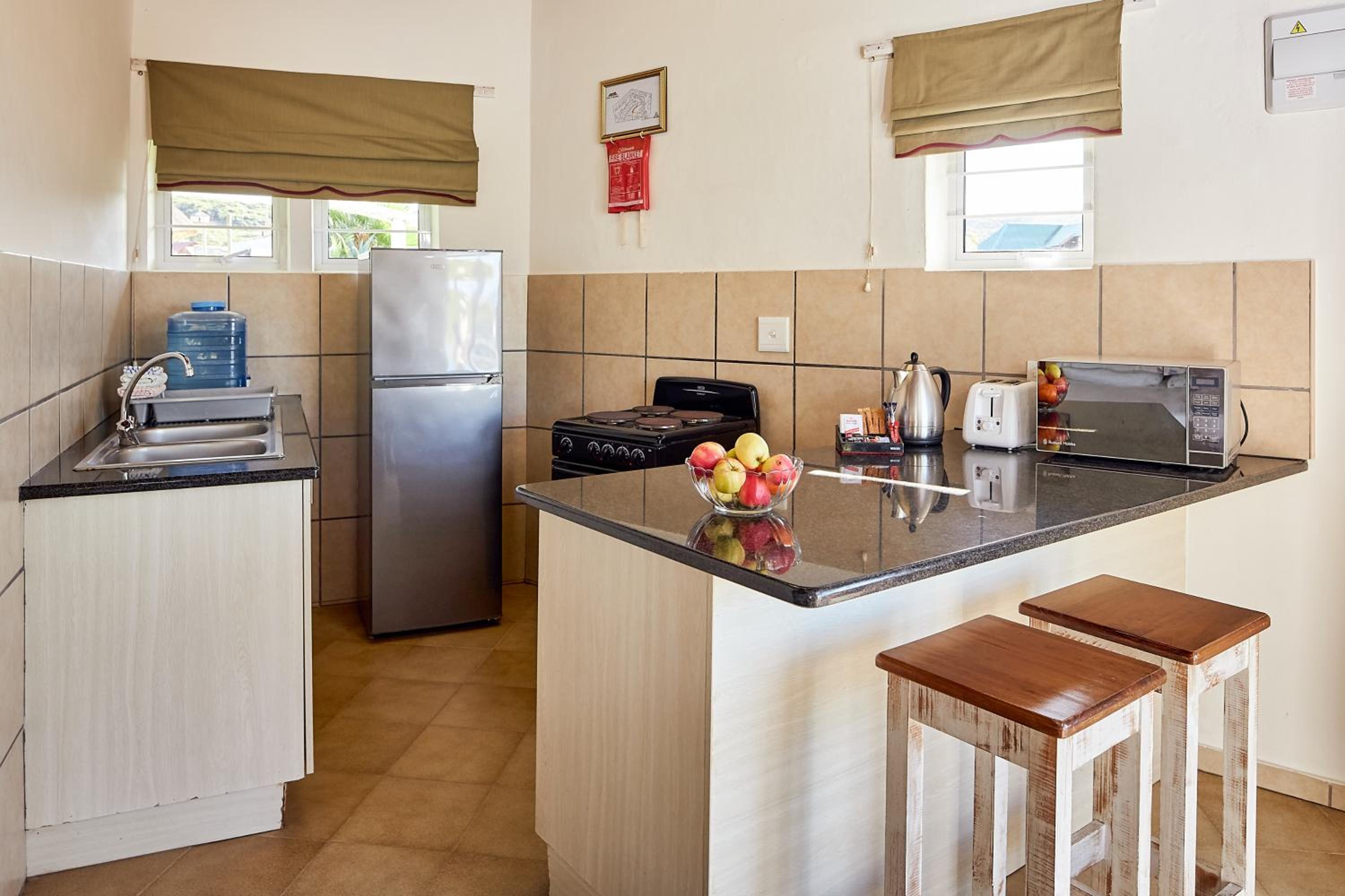 Experience comfort in our self-catering apartments with open plan kitchens, lounge areas, and thoughtful amenities like a double sofa sleeper couch, fan, and free toiletries.