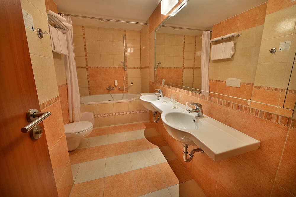 Unser Aufenthalt war angenehm. Jedoch war das Schwimmbad, Hausschuhe, Zahnbürste und Zahnpasta nicht kostenlos. Die Umgebung war sehr schön.Wir waren gern im Schlosspark spazieren und die Labyrinthe besichtigen.