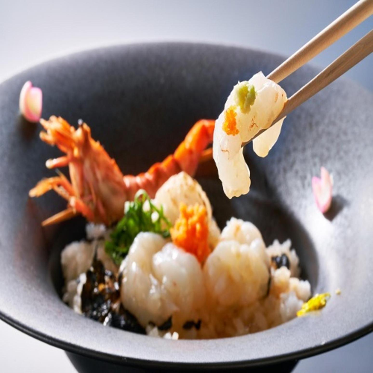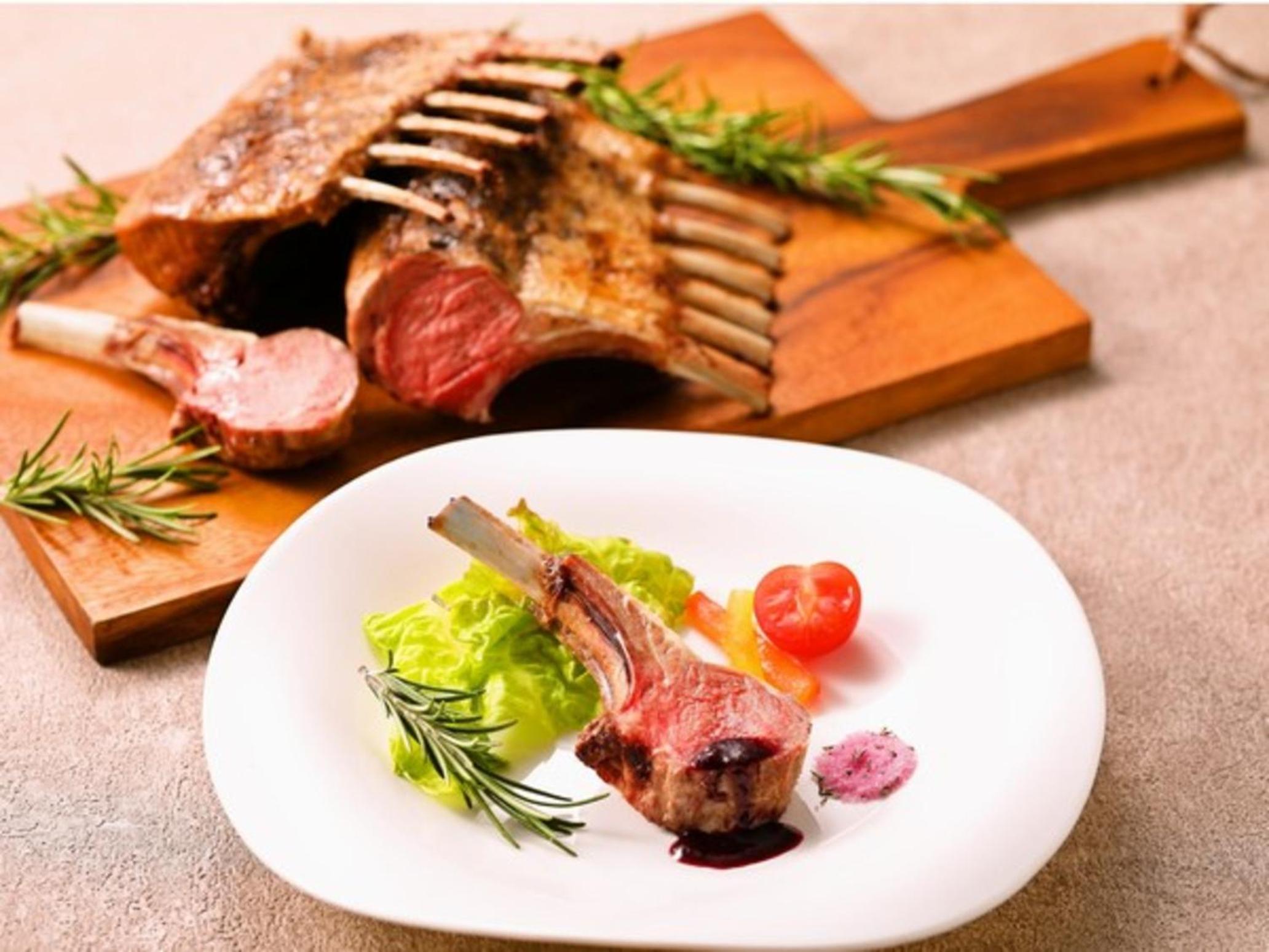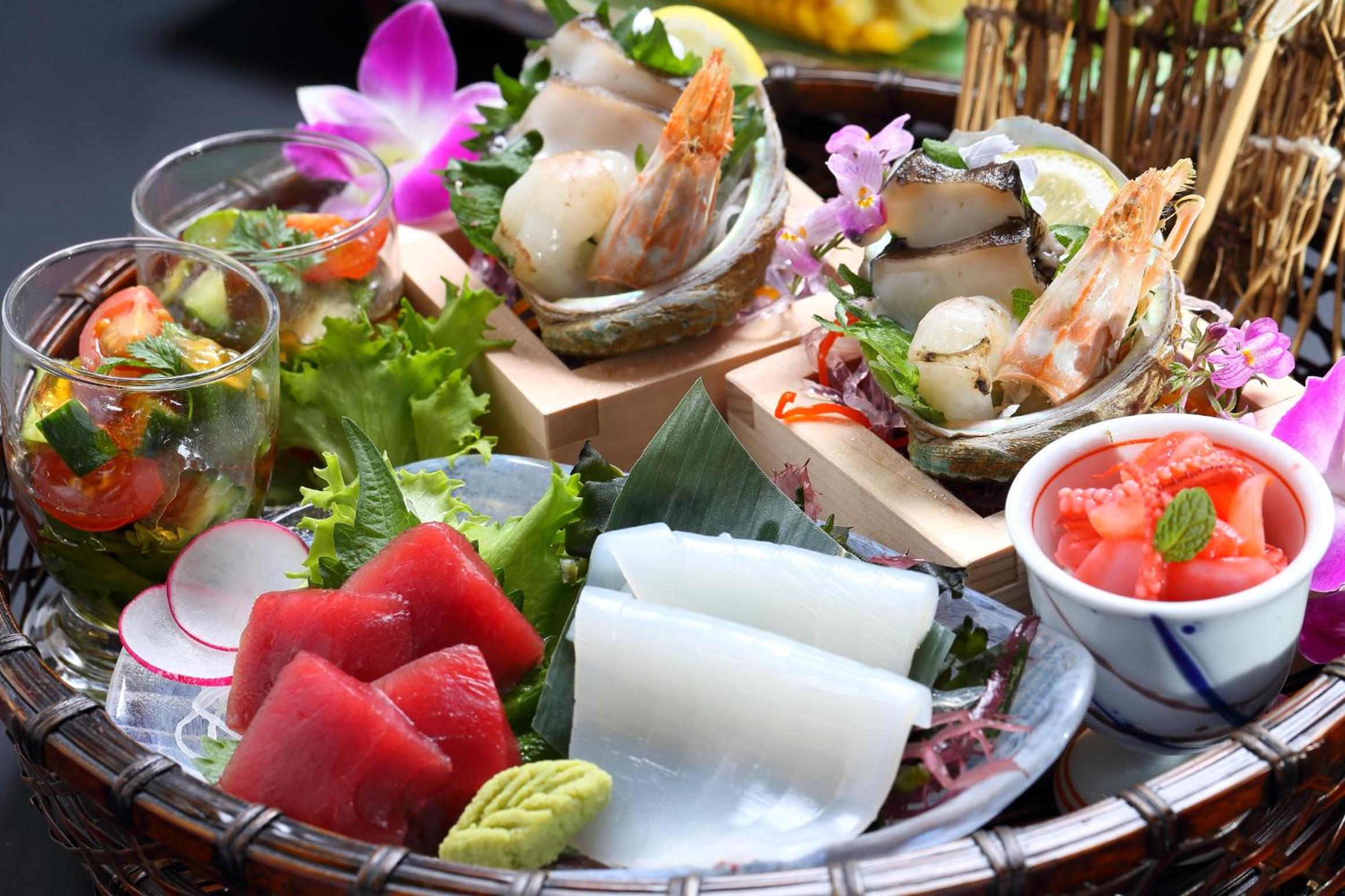 カニ、お造り、陶板焼きのマトンが柔らかくてびつくり!