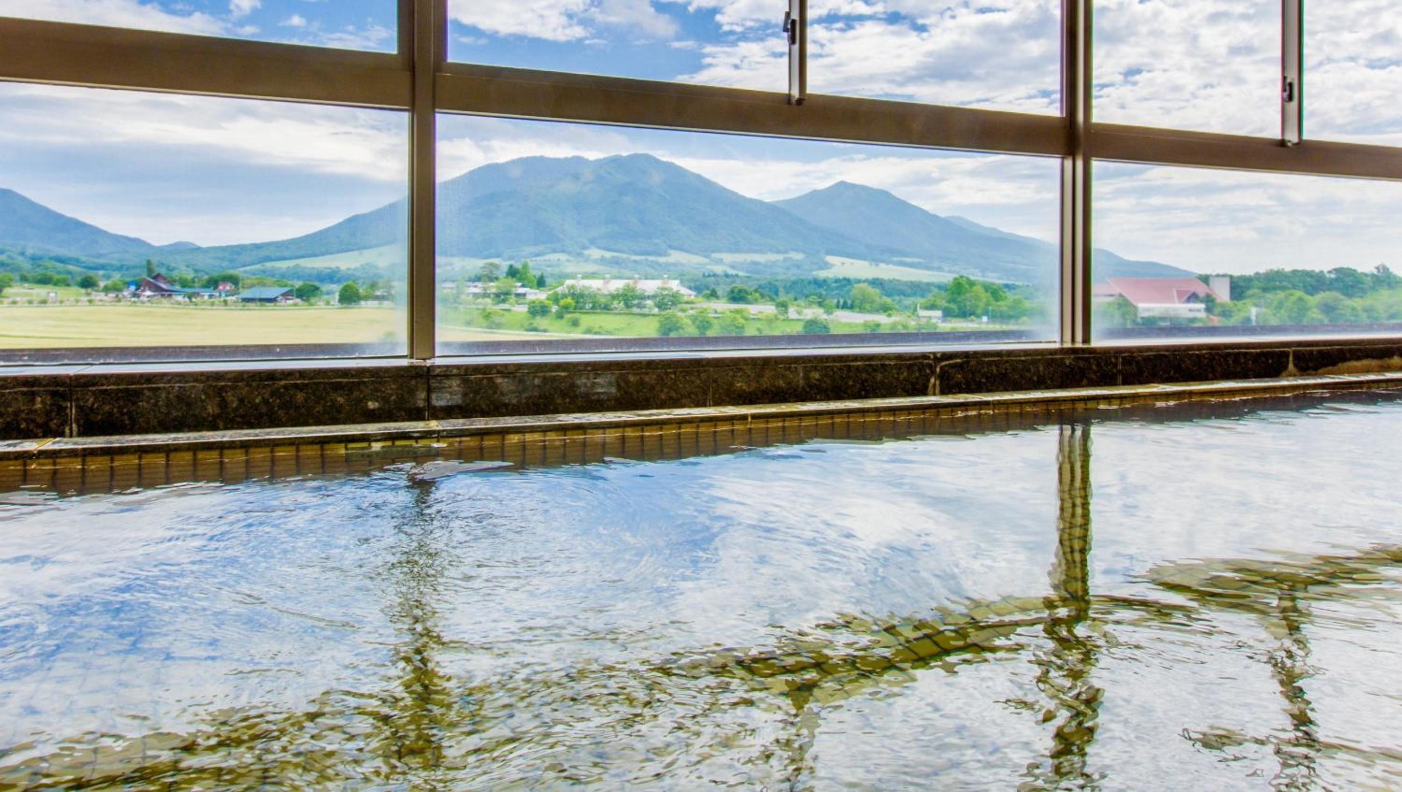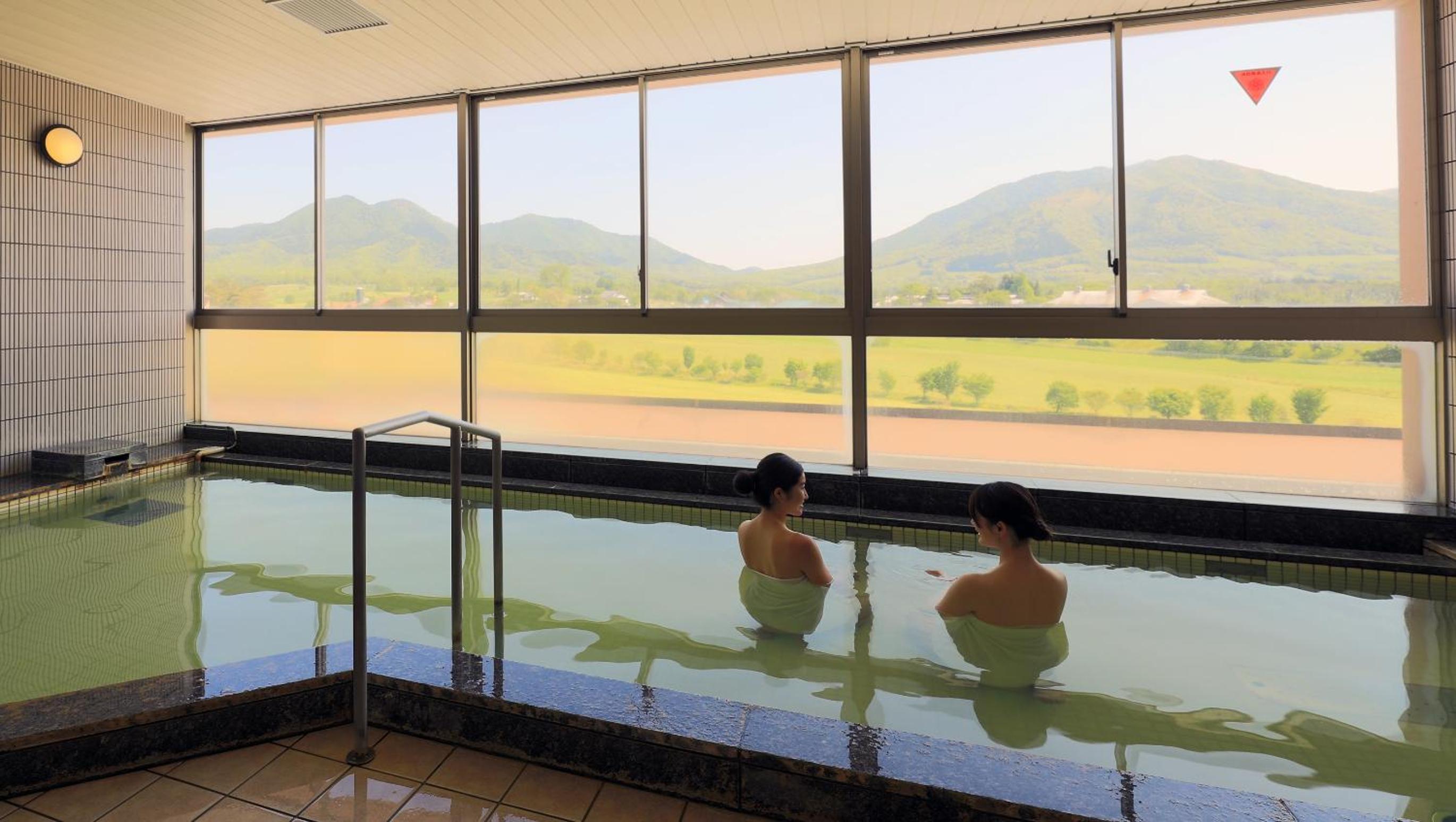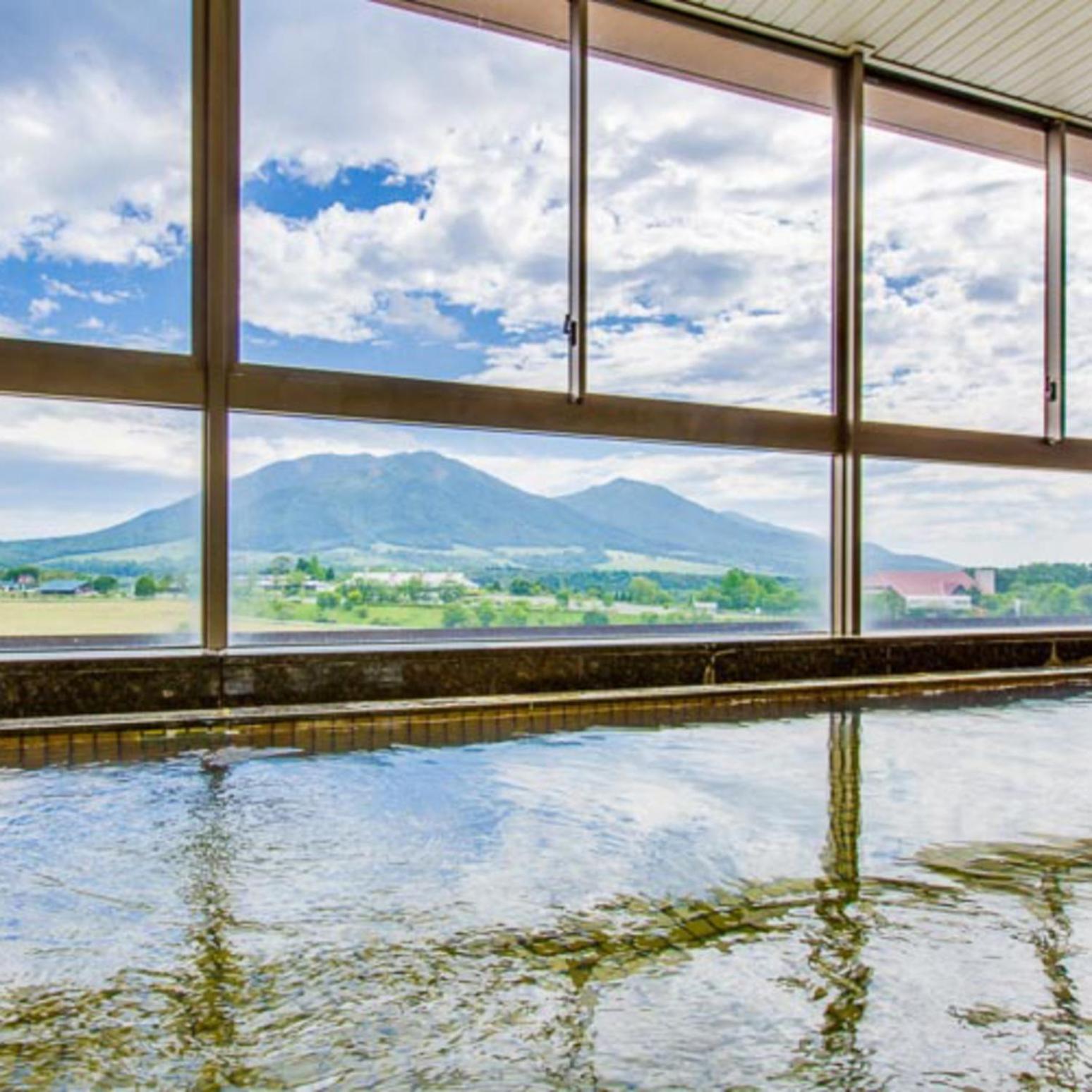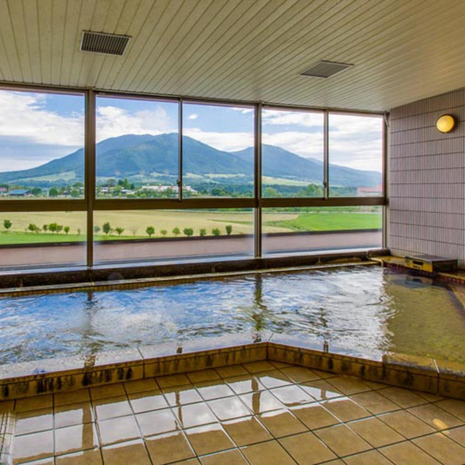 お風呂からも、同じ様に山々が見えて、露天風呂のようで、泉質も、温度もよくて、いつもより長く浸かって温まりました〜。