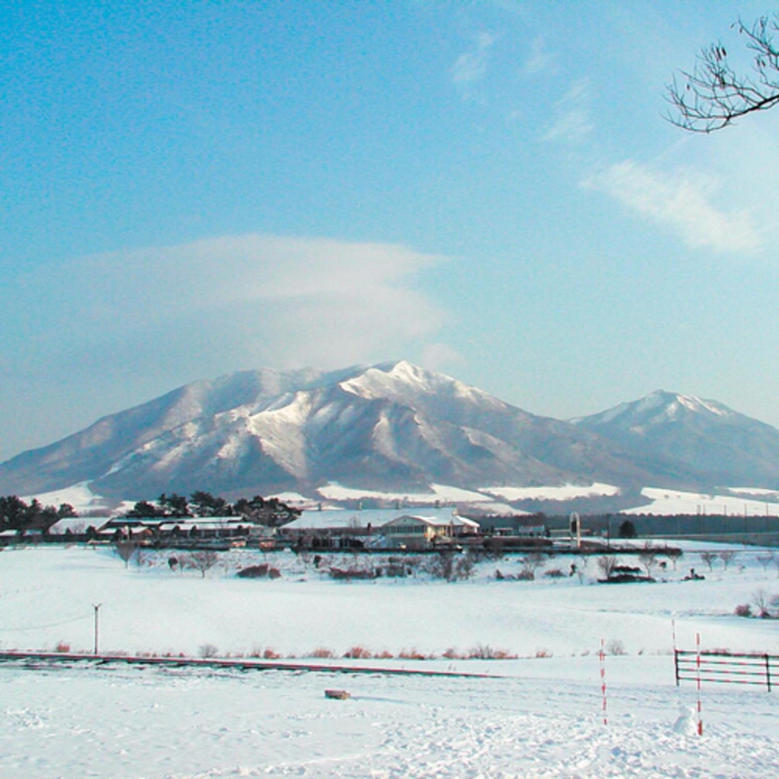 お部屋から、雪化粧の蒜山の山々がそびえて圧巻のロケーションでした。