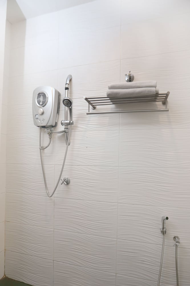 A kettle in the room or hot water dispenser at every level would be nice. The bathroom floor was flooded during showers. There could be a choke in the drainage.