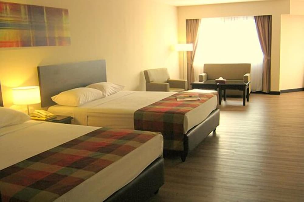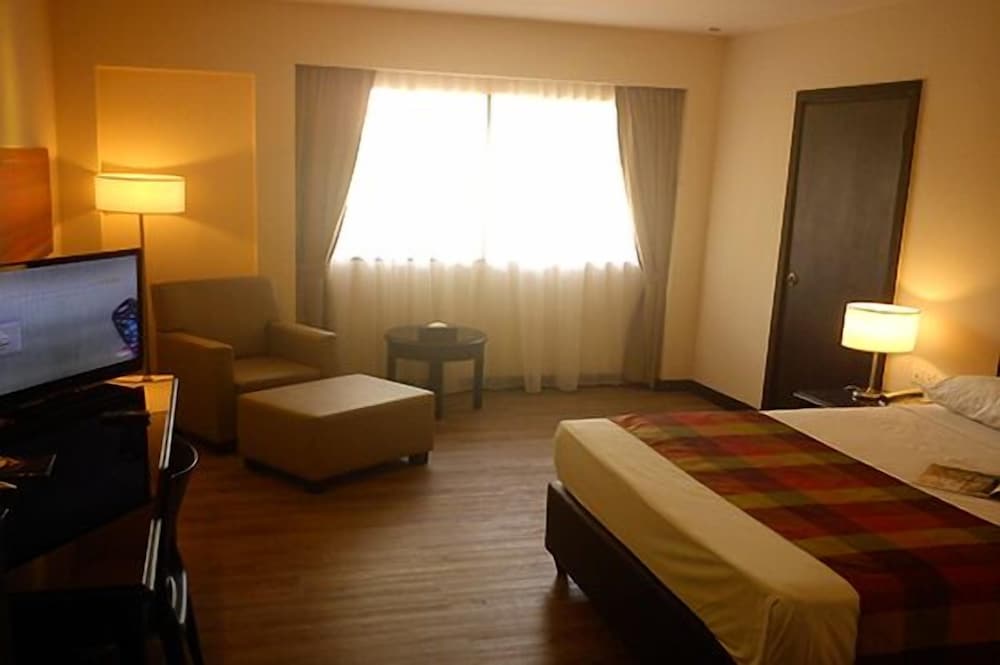 I am a generally easy-to-please type of guest; however I can say that I did not have a good experience with this hotel. Check in was smooth, however, reception did not bother to ask specifically about how many guests will be staying and gave us insufficient amount of breakfast coupons (we had to come back at night and get them from the night shift reception even after calling them to request). The room itself was dusty, had a dead cockroach, cobwebs under tables and dead insect wings on the bed. Called Housekeeping multiple times but there was no answer. Finally they came after we contacted Reception, with a broom and did not bother to vacuum all the dust and dead insects. Person even came into the room with shoes on (which defeats the whole purpose of sweeping the dust in the first place). Breakfast spread was adequate; however, when we requested for omelette the cook told us they did not serve those upon request. And yet when a foreign guest requested for the same thing, they quickly provided it without complains. Restaurant staff were not attentive and did not provide cutleries on tables.
