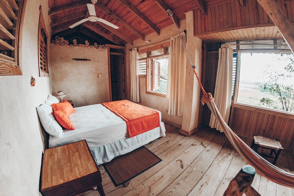 Me parece que para ser un hotel ecologico no es necesario que falten asuntos basicos como no agua caliente! No cortinas en parte de la habitación y las que tiene no poseen blackout lo que hace que el sol te despierte desde que sale! Las toallas parecen trapos de piso! Falta privacidad en las habitaciones ya que en el caso de nuestra habitación la puerta de la habitación contigua esta abierta arriba y los ruidos... se escuchan bastante.. esos detalles deben coregirlo para que este maravilloso lugar este mas completo...