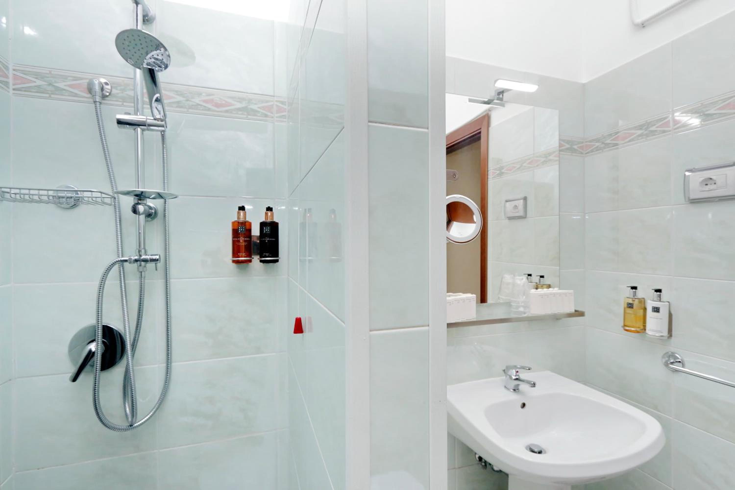 Very large, clean room. The reception staff were helpful and booked us taxis to the airport, gave us directions, lent umbrellas etc. The location was great as it was about a 5/10 minute walk to the colosseum and in a pretty square which had a church, wine bar, restaurant. There was a nice cafe a 1 minute walk when you turn left upon exiting the hotel, which sold fresh focaccia. The train station was also only 5 minutes away, allowing us to travel to Vatican City easily.