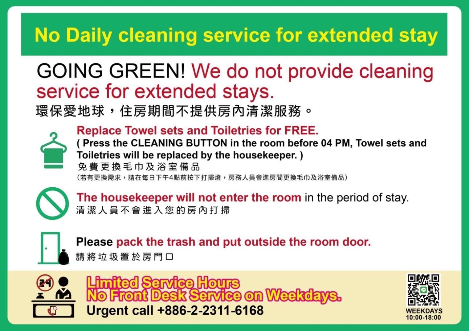 They don’t provide housekeeping service to clean up and tidy up the beds and room over my 4 nights stay. They only change the towels and clear the rubbish.
