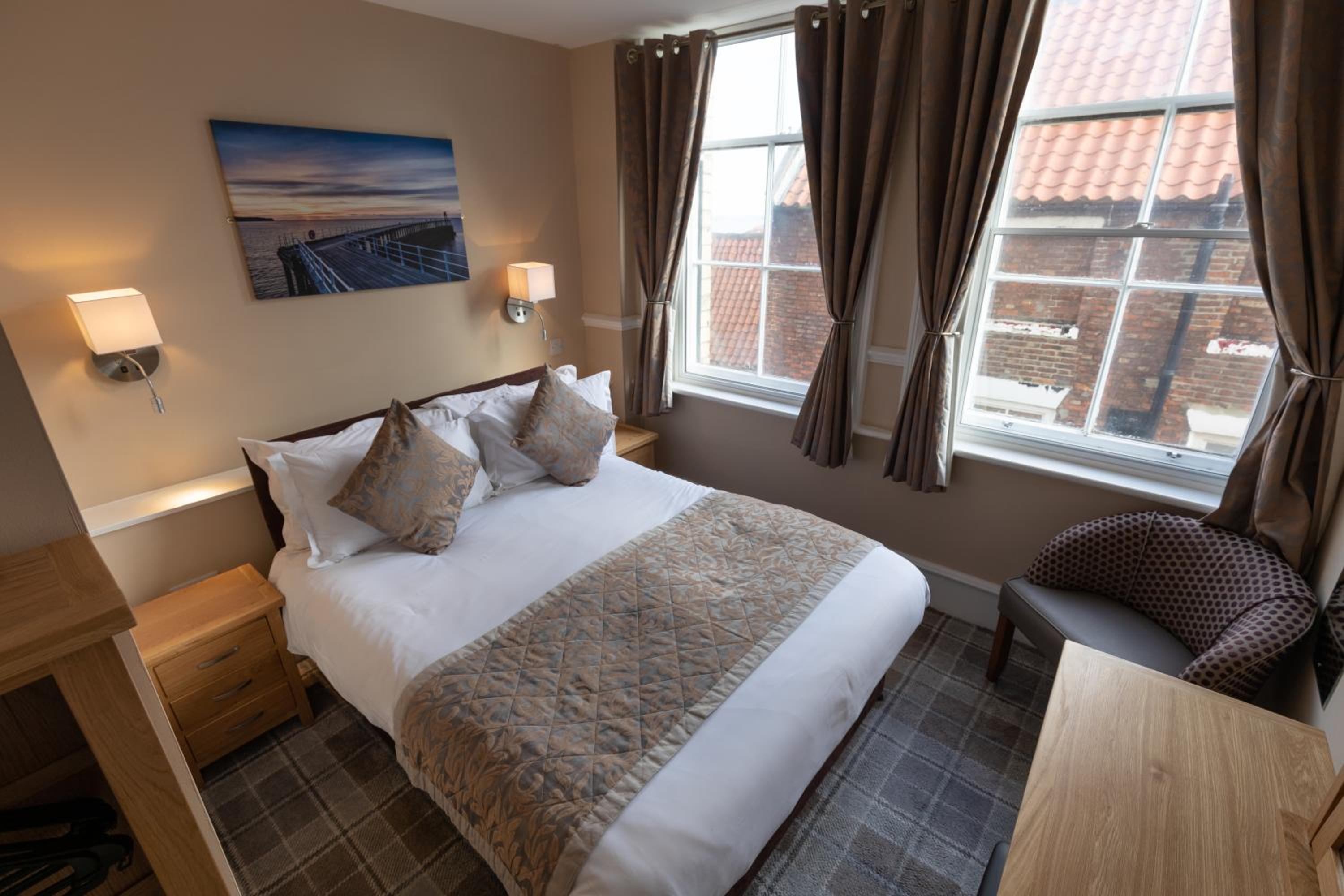 Experience the charm of en suite rooms at The Resolution Hotel, located steps away from Whitby's beach. Each room blends traditional decor with modern amenities like a TV and tea/coffee facilities, promising a comfortable stay.