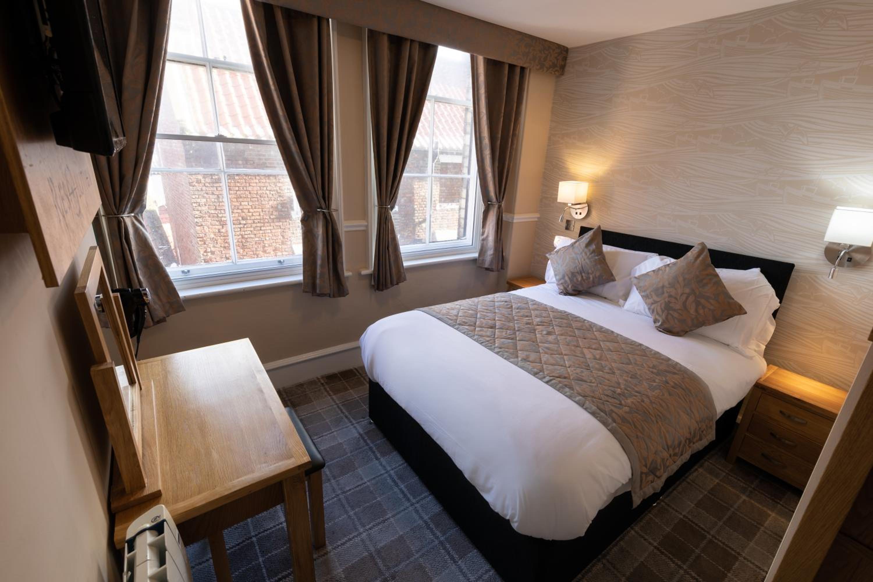 Chose large room with bath and did not disappoint. Weather not great for Whitby but the room was great. Tea, coffee facilities in the room. We picked breakfast too which was lovely. Pub on lower floor (where breakfast is served. Bar meals on offer. And the atmosphere was nice. Will stay again