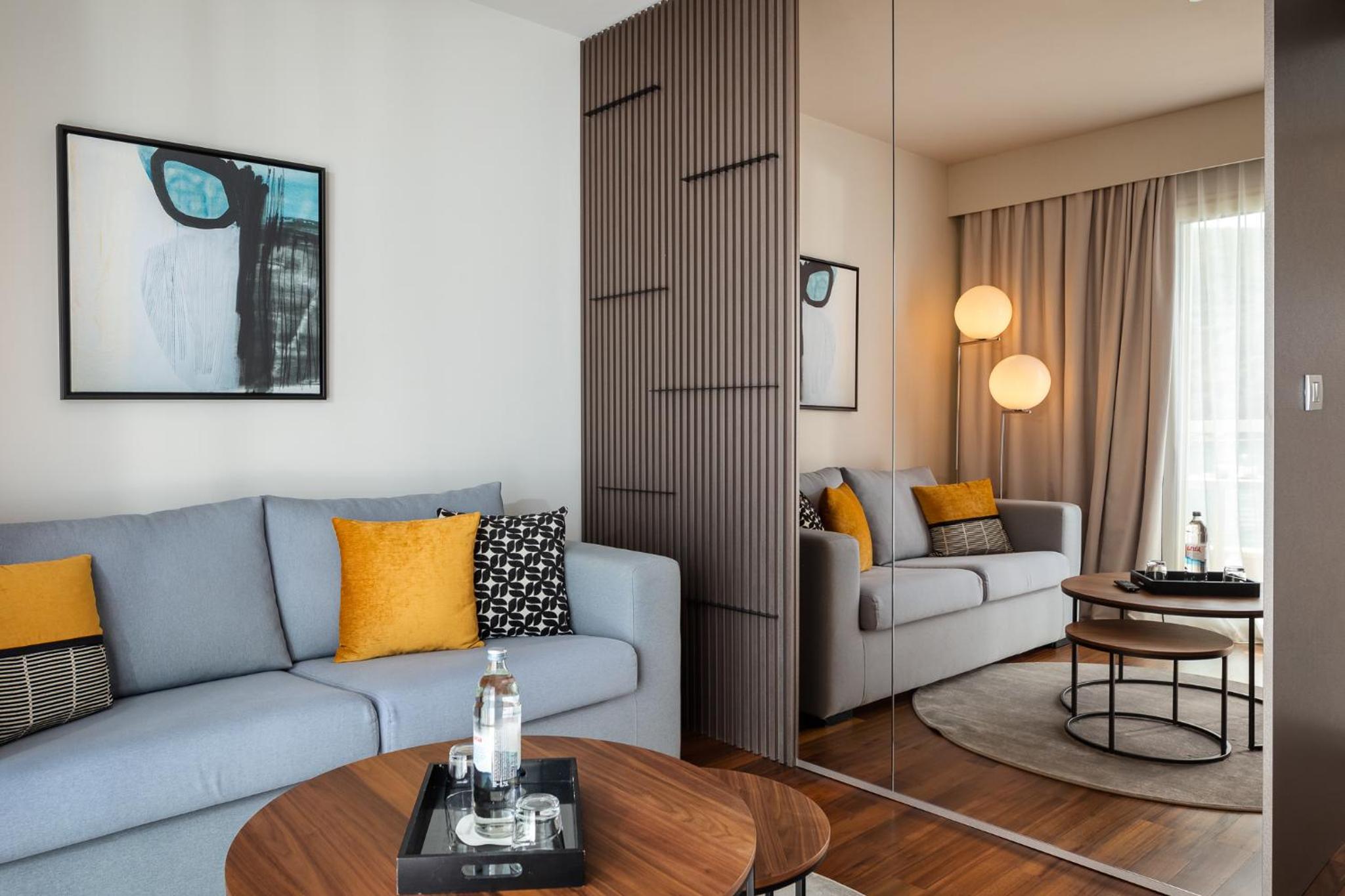 Indulge in the clear lines and warm colors of our suites, designed to enhance your relaxation and comfort during your stay. Every detail has been carefully considered to ensure a truly rejuvenating experience at Hotel Adoral.