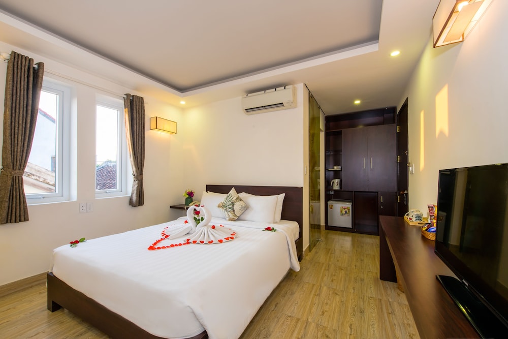 Great hotel just outside of the Old city but only a few blocks. Room was good size and amenities were fine. Bed was comfortable and AC worked great. Restaurants around the area. Location was nice as I would not want to be inside Old Town. As a female solo traveler I felt safe walking to and from Old Town although I was usually in by 10pm. Taxi was only 30,000 dong from Old Town but mostly I walked back. Mini mart, great massages and ATM close. Breakfast was basic as you preordered the night.