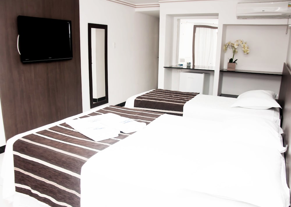 O estacionamento é praticamente na rua, o que não traz muita segurança aos hóspedes que possuem veículos (cobram taxa de estacionamento). O quarto 308 tinham ao todo 4 tomadas, 1 delas não funcionava e outra era da TV (senti falta de uma no banheiro). O ar condicionado vazou a noite inteira, o que fez uma pequena poça e molhou alguns pertences. O frigobar bem antigo, enferrujado, porém, gela bastante. Café da manhã bem servido, variedade razoável. Funcionários bem prestativos e educados. O serviço de limpeza só funciona se deixar a chave na recepção, caso saia e leve consigo a chave, não verá seu quarto limpo ao voltar. Wi-fi pega bem. No geral, estabelecimento sem muita burocracia, clássico e simples para quem quer economizar.