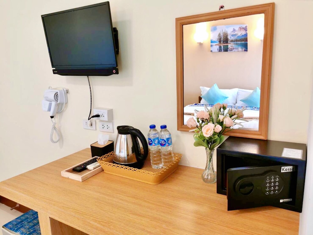 夜8時過ぎのチェックインであったが、事前に連絡してあったためか、ガードマン?が速やかに対応してくれた。朝食はないが、すぐ近くにカオソーイの美味しい店があります。食後のコーヒーは午前中だけみたいでした。(午後は片づけられている)部屋には毎日、水が2本提供され、クローゼットにはハンガー(やや使い古されているが)が4本あり、入り口を出たところには洗濯機が20B、乾燥機が30Bであって、6日間の滞在で1回利用しました。現地の在日日本人用情報誌や漫画もありました。マイナス点は、シャンプーとボディジェルが若干ショボかったのと、洗面台、シャワールームにダニがちょろちょろしていたことです。全体的には、コストパフォーマンスは良かったと思います。