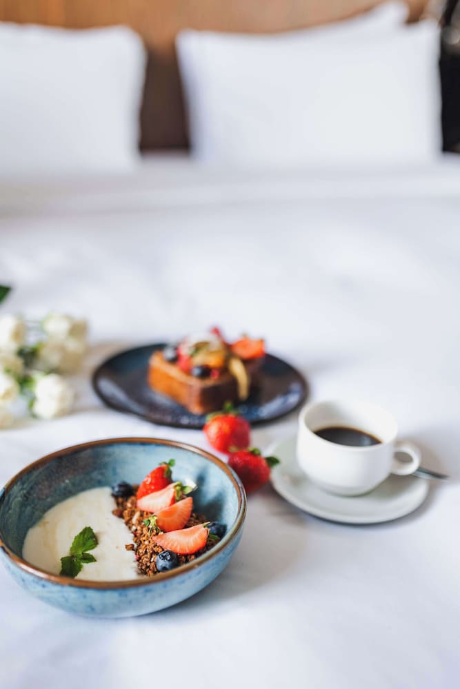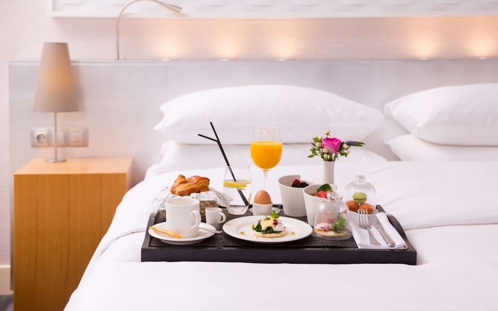 Individually-wrapped food options are available through room service