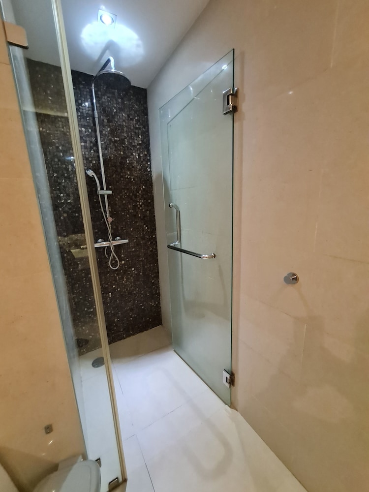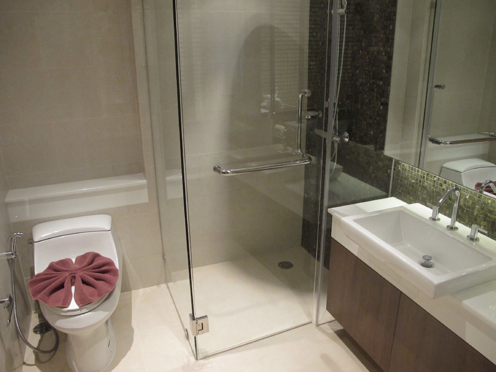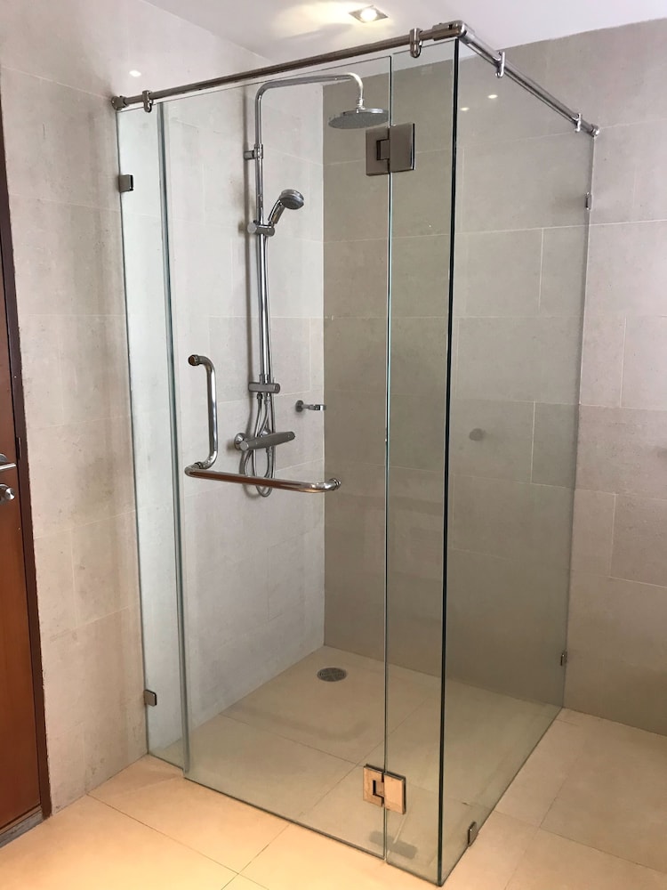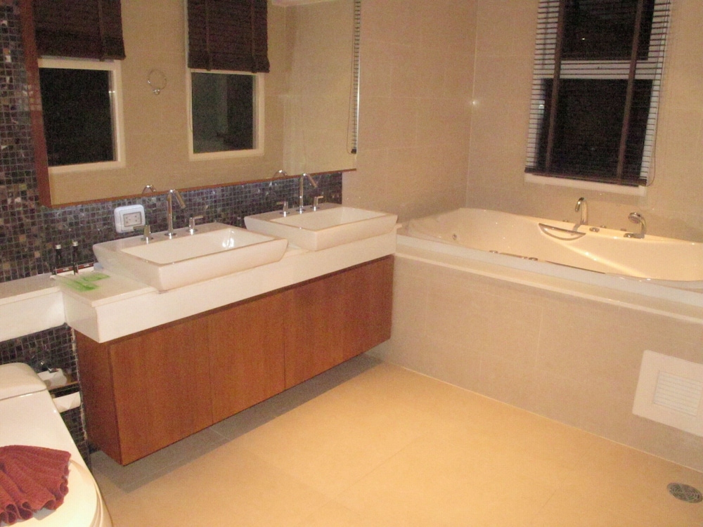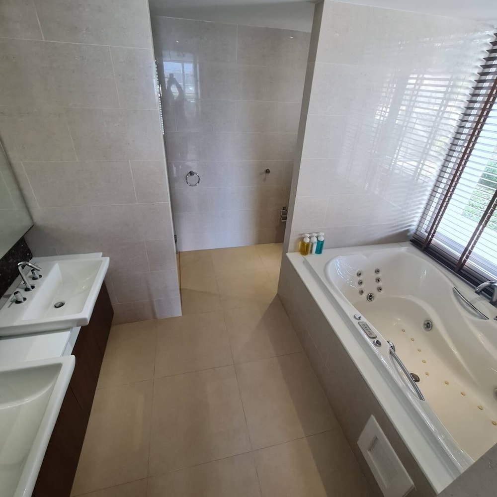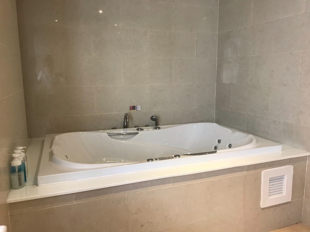 My overall stay was awesome. Big rooms, sea view with plunge pool and jetted tub. Equipped with basic kitchen appliances, microwave, oven and huge fridge. I would just like to highlight that the toilet bowl keeps on flushing on its own which annoys us at times. The carpark has urine smells and hope that something can be done to it as the smell was a total turn off.