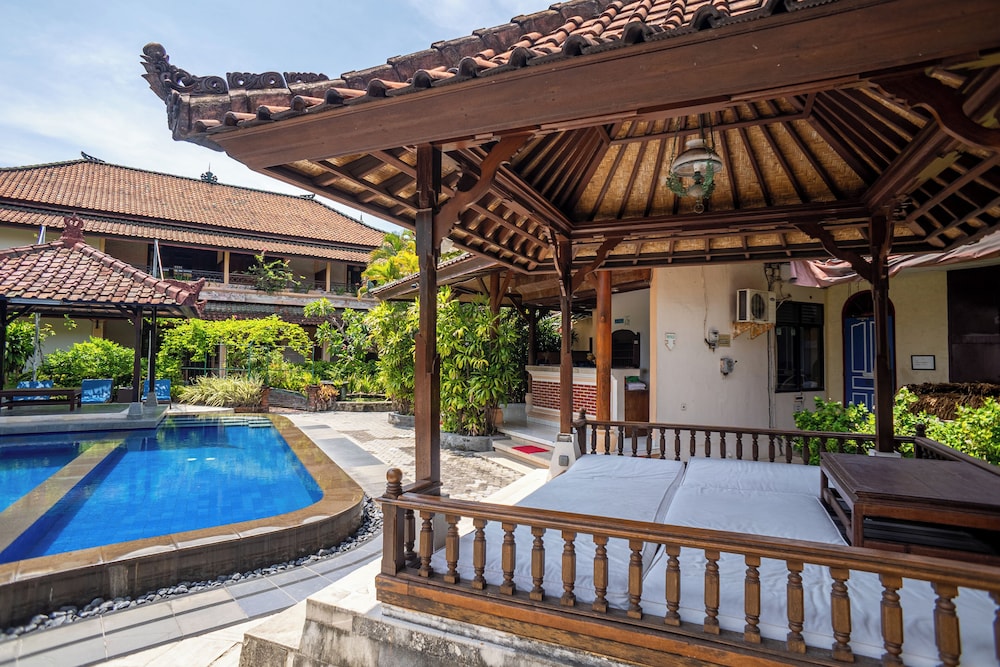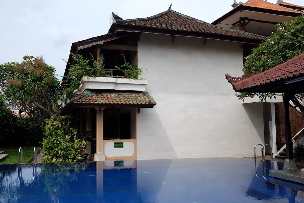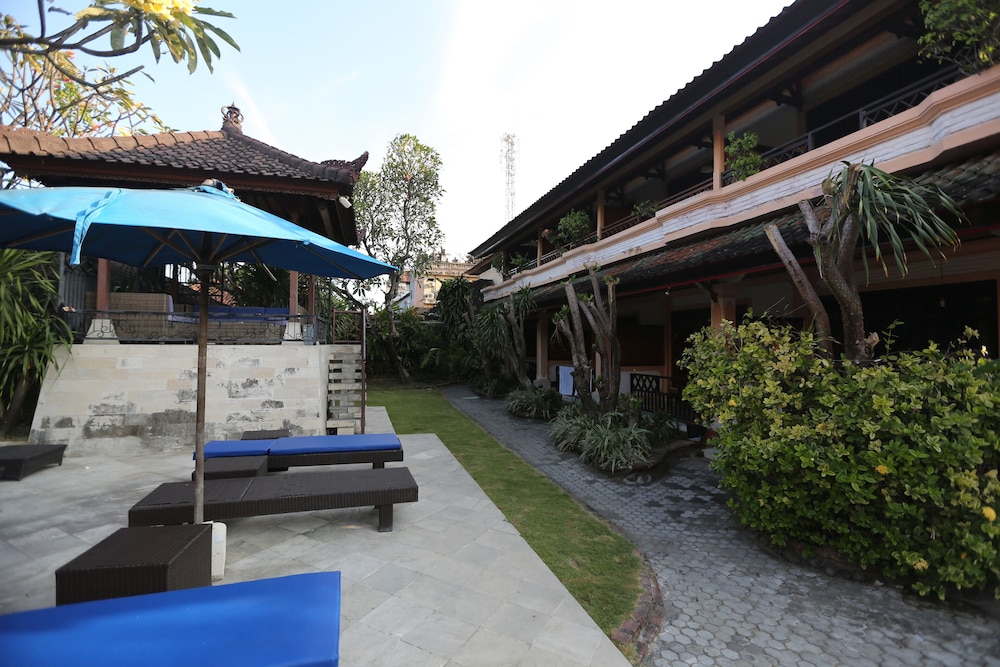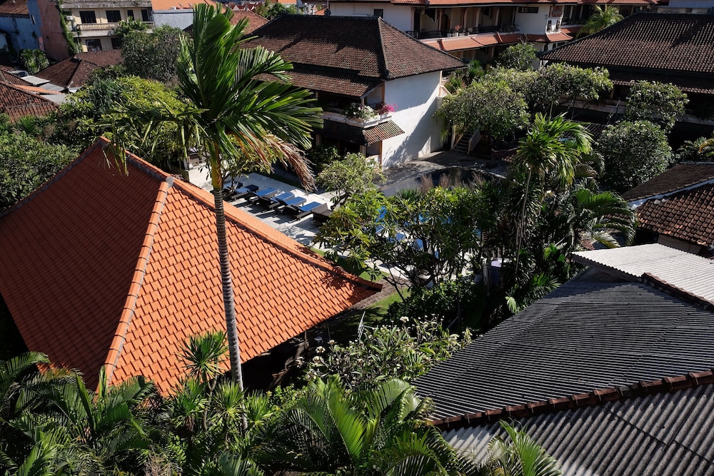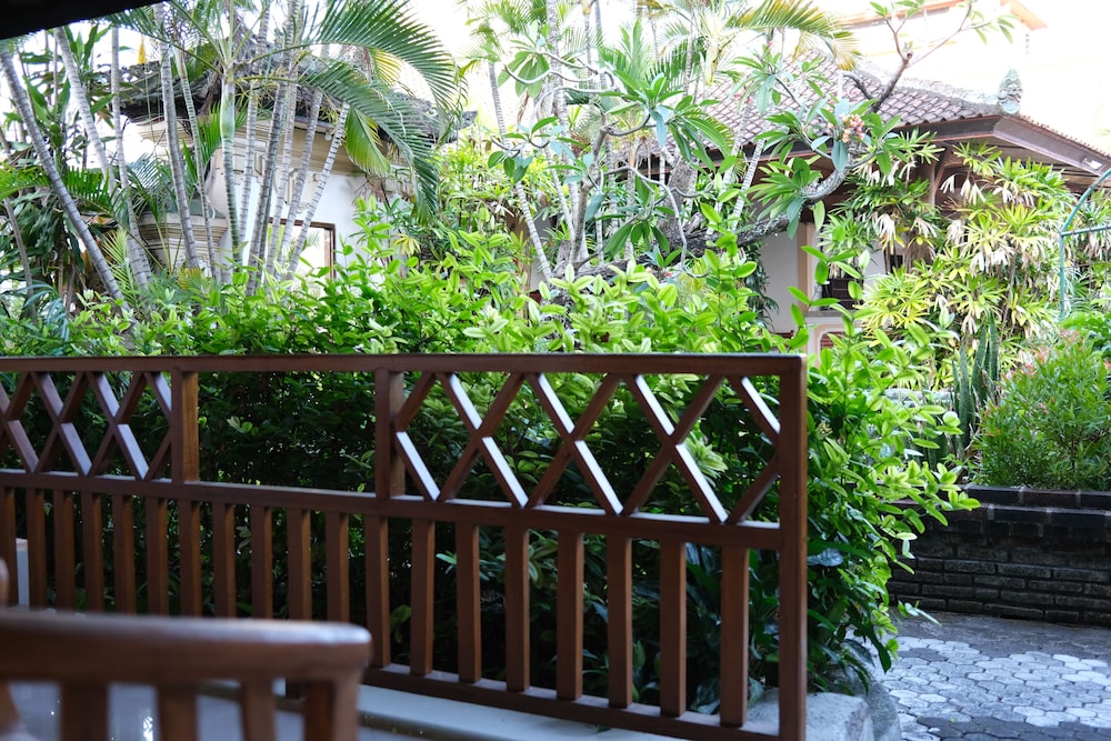 Nice hotel with friendly staff. The gardens were small but neat and very beautiful. The pool was clean and well maintained. For the situation it is in ie the middle of Kuta it was quiet and relaxing