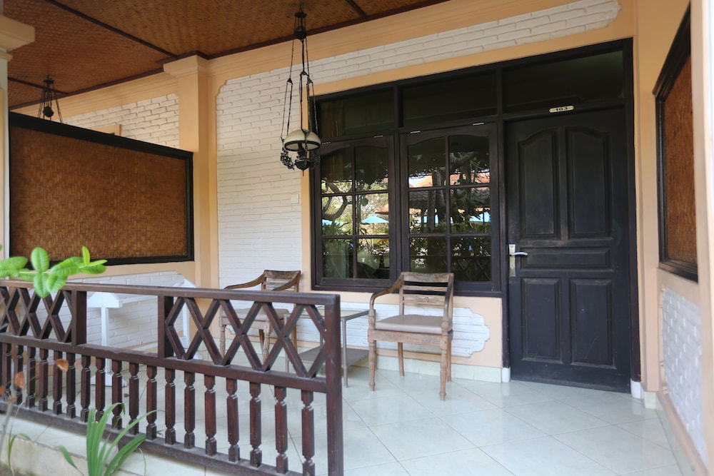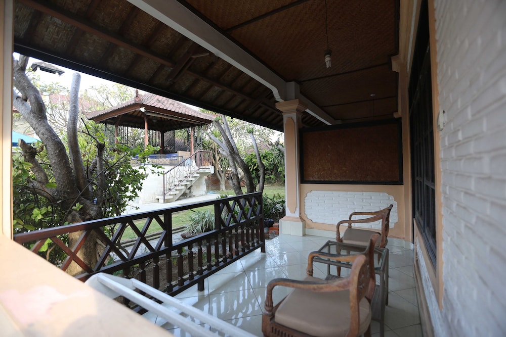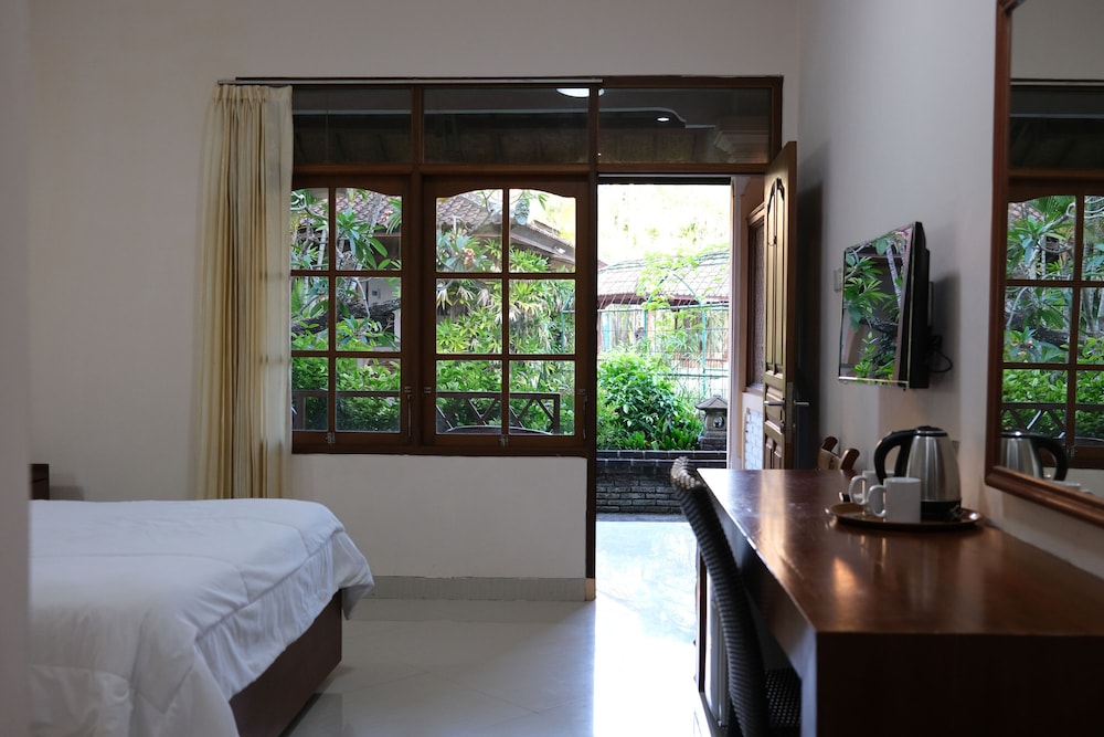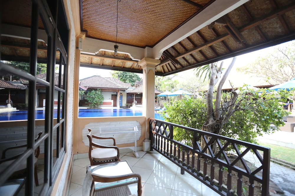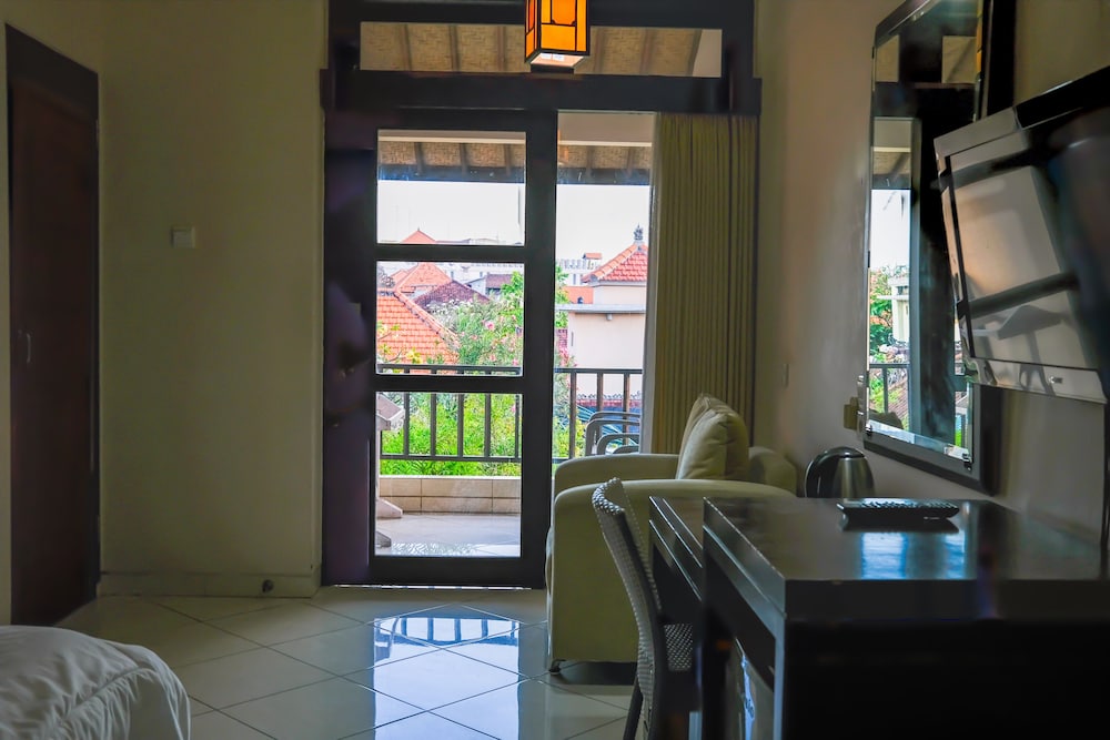 Nice hotel with friendly staff. The gardens were small but neat and very beautiful. The pool was clean and well maintained. For the situation it is in ie the middle of Kuta it was quiet and relaxing