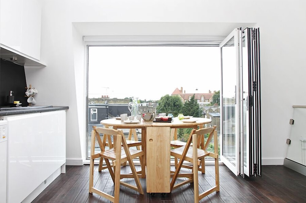 Space for 4 people. Close to train stations and other public transport. Nice eating places around. Would certainly stay here again.