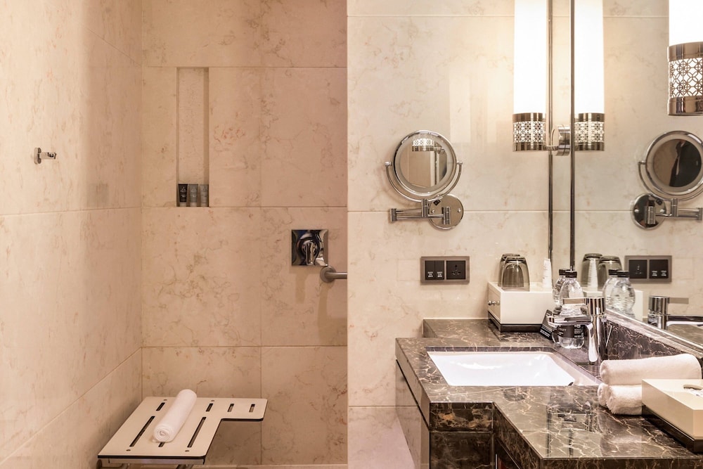 The iconic building is a very attractive exterior, but the interior really need refurbishment. Especially the plumbing and ventilation seemed to have problems. When we checked in we were very happy that our room were "upgraded", but after hours of waiting we entered a suite with really strong toilet smell, so stinky like in public toilet. We complained and asked for another room. First the Receptionist told us no other room available but a maintenance staff was sent to our room to check. The staff did also smell the unpleasant aroma of the room. We asked her to tell the manager that it would be impossible to stay in that stinky room. Then some one looked like a duty manager came and bring us to another room, which was OK. So we stayed at the hotel. Otherwise all was OK although not as good as we had expected of a JW Marriott hotel brand.