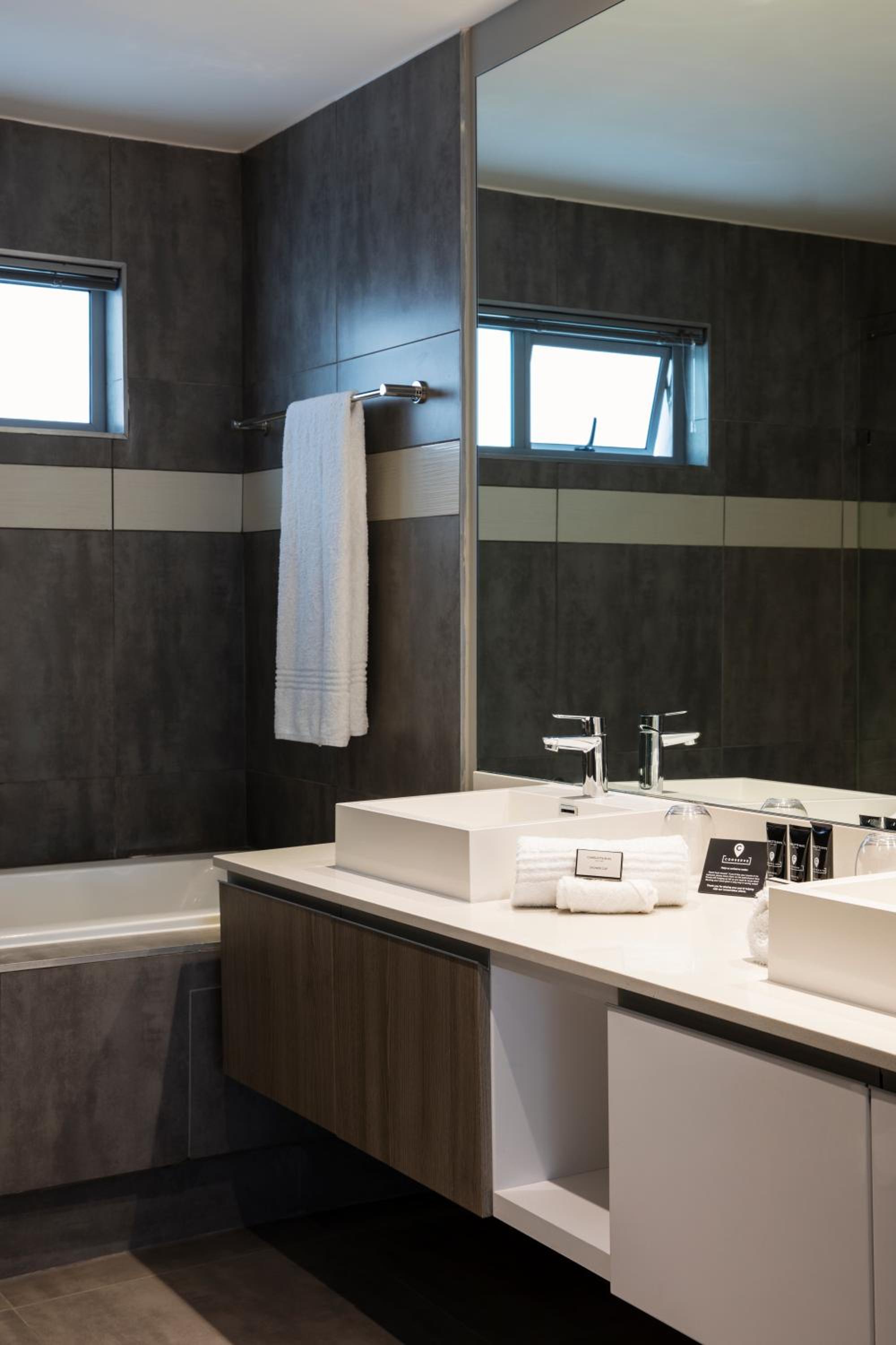 We also stayed in the 1 bedroom apartment, the rooms are big and nicest bathroom ever.