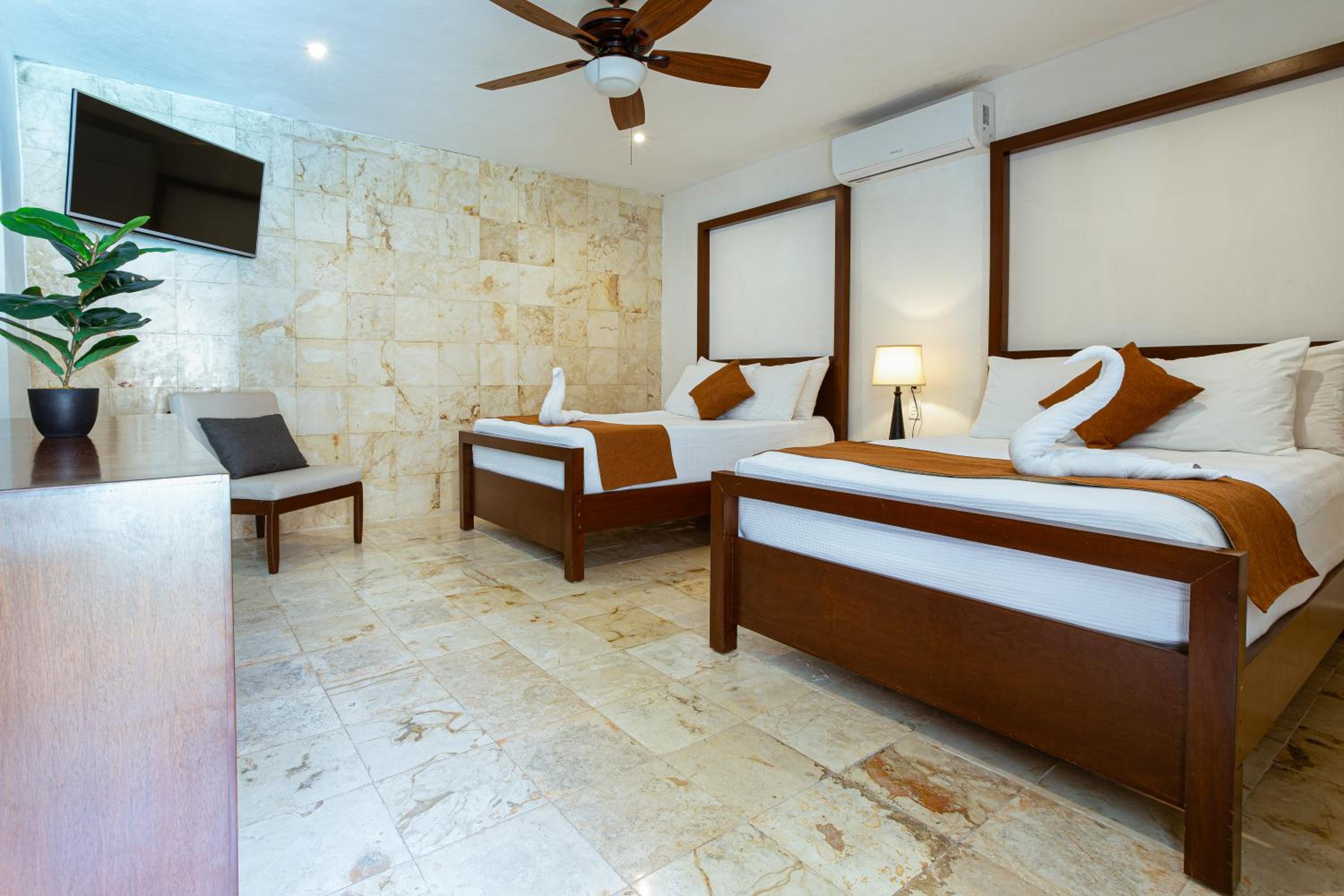 Comfortable Accommodation: Enjoy air-conditioned guest rooms with cable TV, free Wi-Fi, in-room safe, and private bathrooms at La Aurora Hotel Colonial.