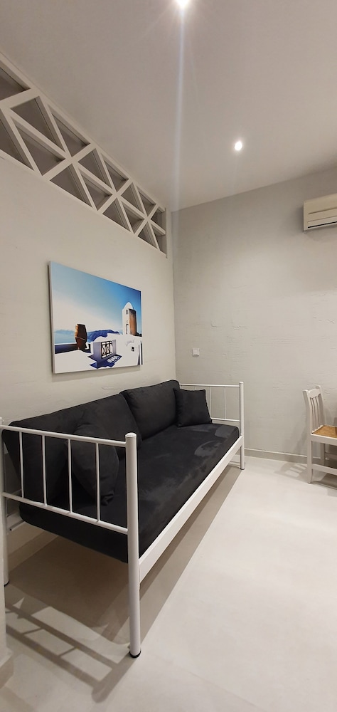 Huge 2-bedroom unit right on beach. Beautiful pool and pool-side bar. Staff were very friendly and spoke English well. Don’t miss the Greek tavern right down the road— food was excellent!