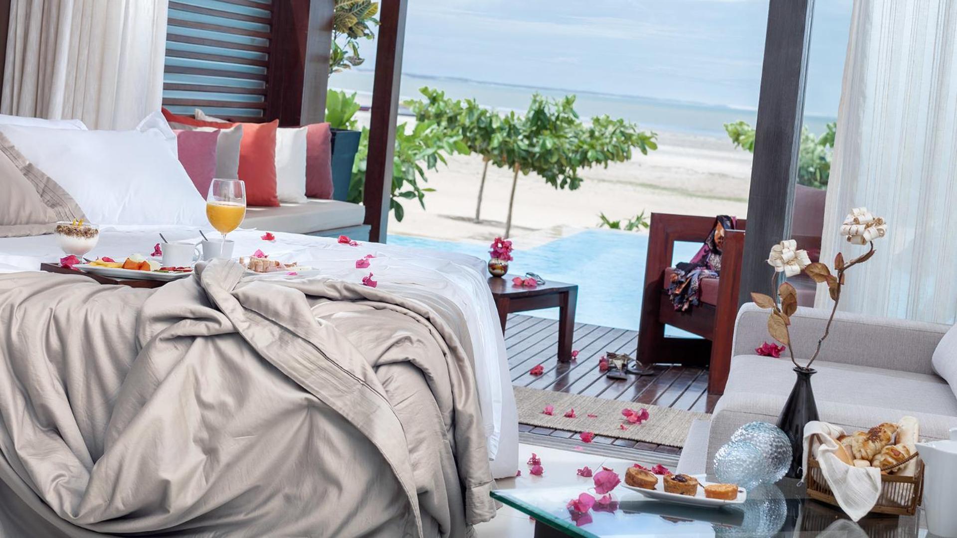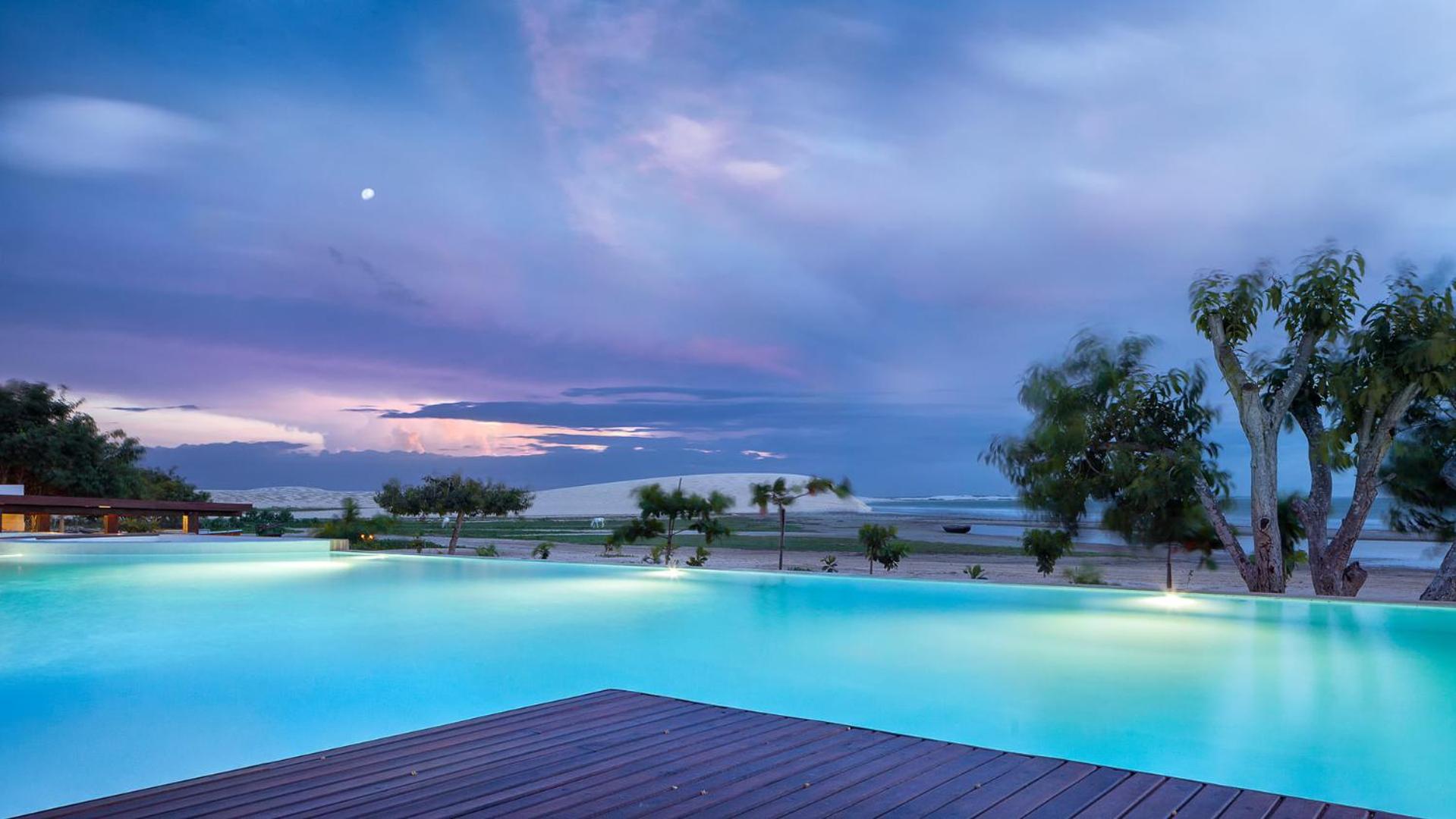 Experience the breathtaking sea views of Jericoacoara Beach at Essenza Hotel, a luxurious 5-star beachfront accommodation. Relax by the infinite-edge pool or unwind in the sauna while enjoying the complimentary WiFi.