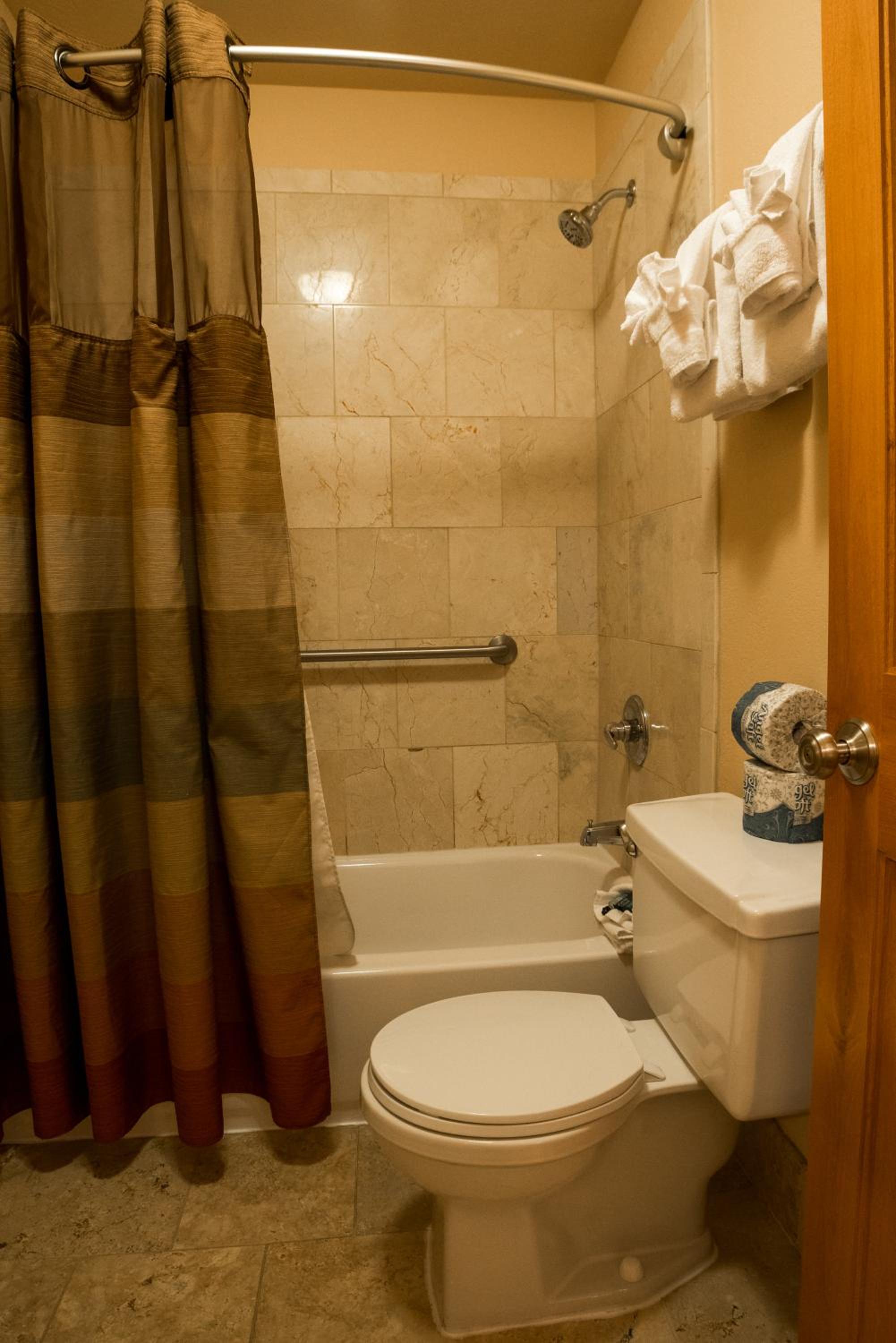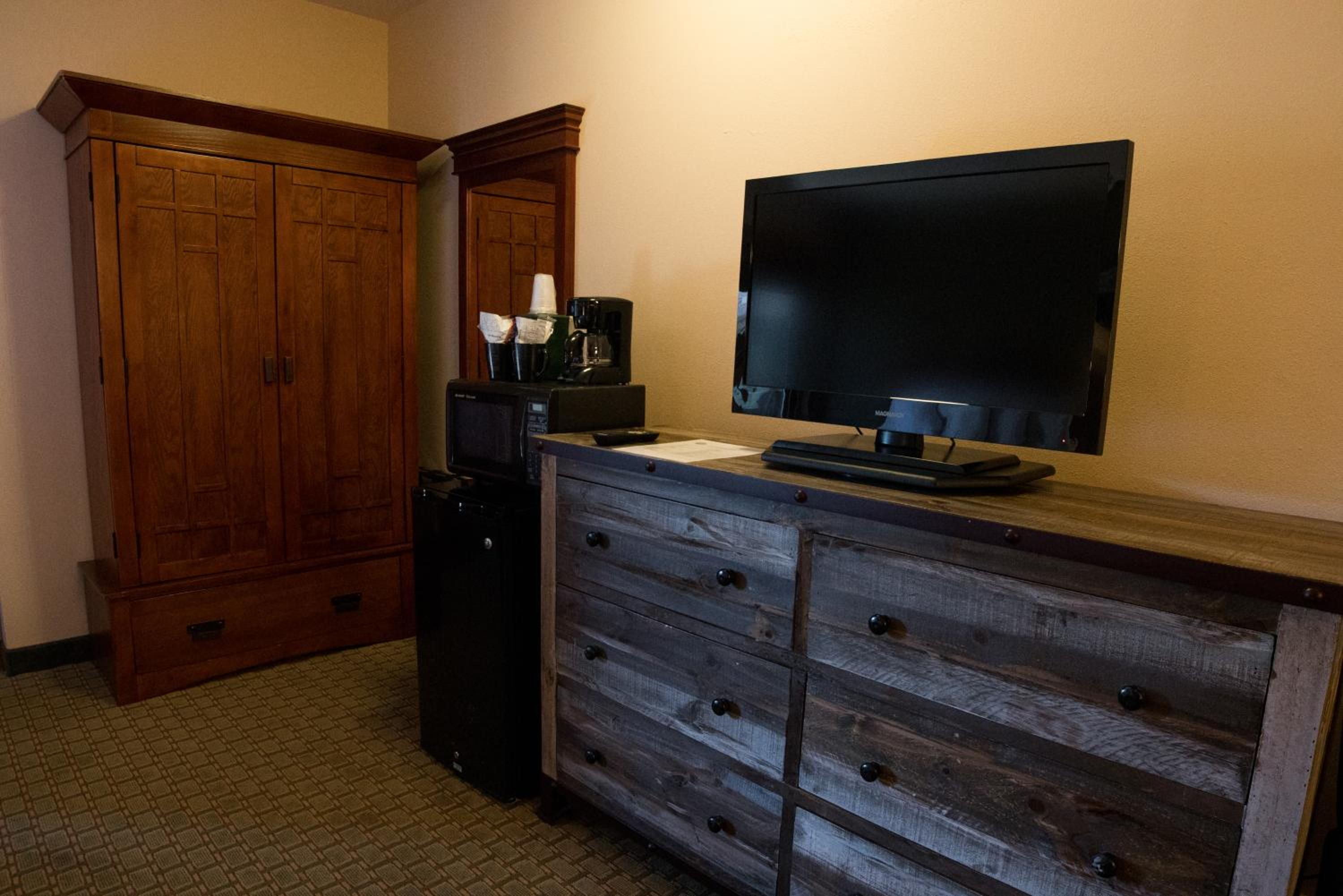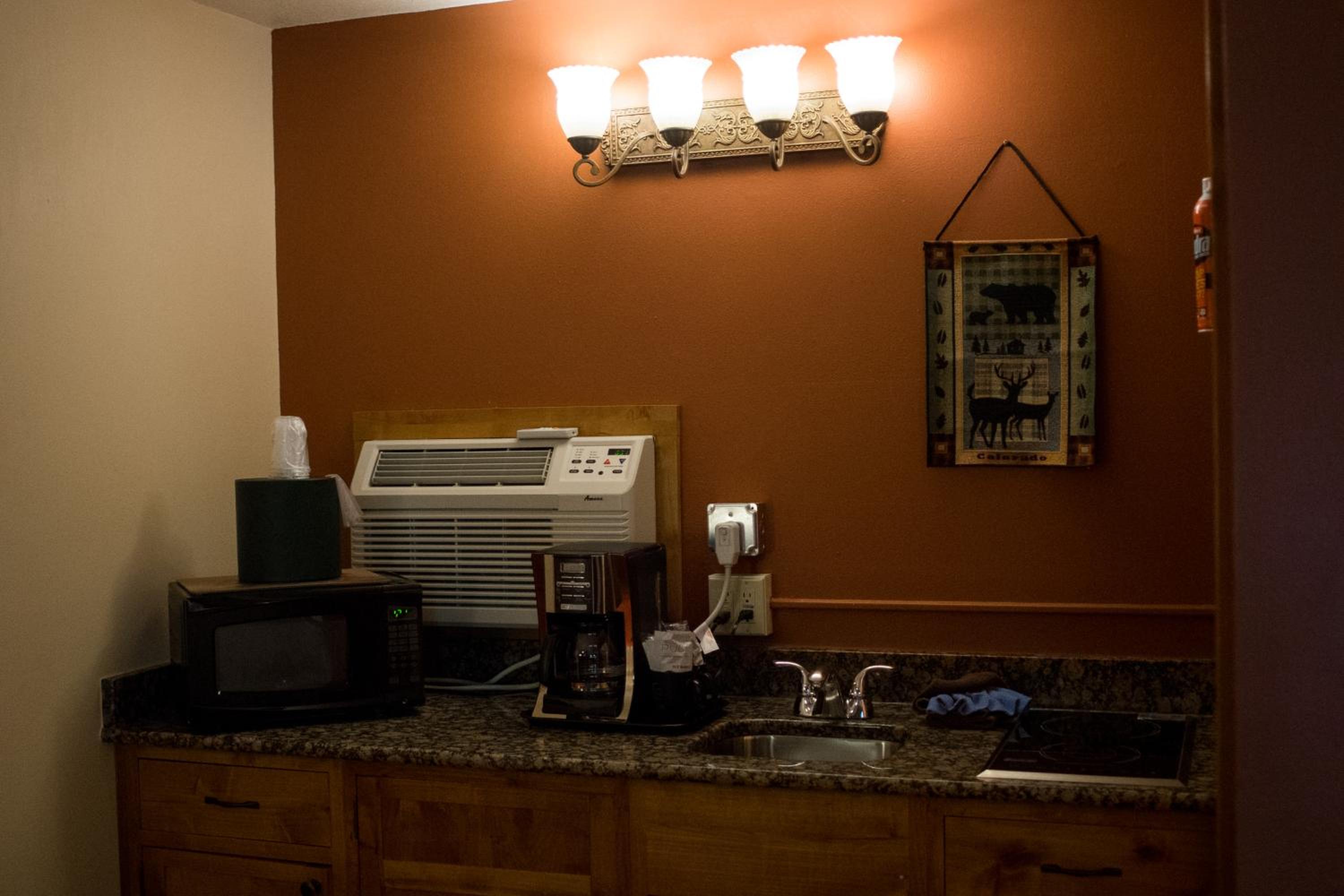 Cozy Amenities: Unwind in the hot tub, start your day with a complimentary continental breakfast, and enjoy modern comforts like free WiFi, flat-screen TVs, and in-room fireplaces in select accommodations.