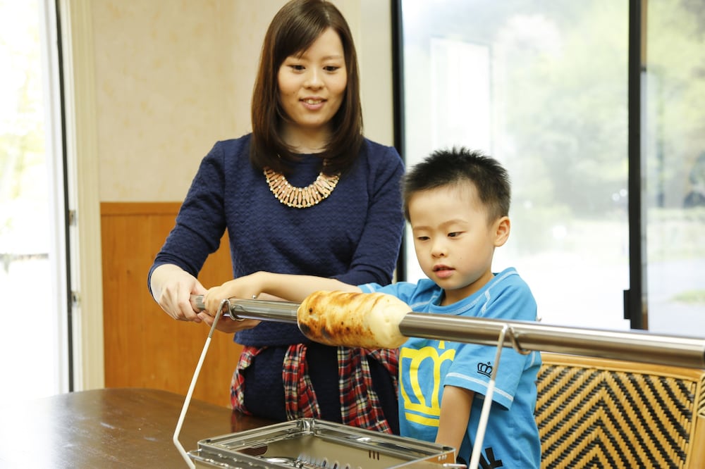 夕食のバイキング時に、餅つき、流しそうめん、かき氷などイベントが行われたので、子供たちは参加出来て楽しんでました。食事に行く時のエレベーター待ちが長かった。階段で上がろうとしても、目的の階手前で行き止まりで、結局エレベーター待ちをした。大浴場は広く、種類も多かったので満足しました。プールも管理されていて楽しめました。