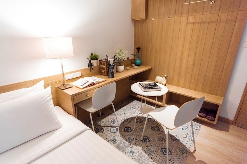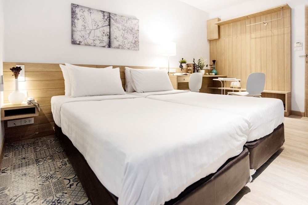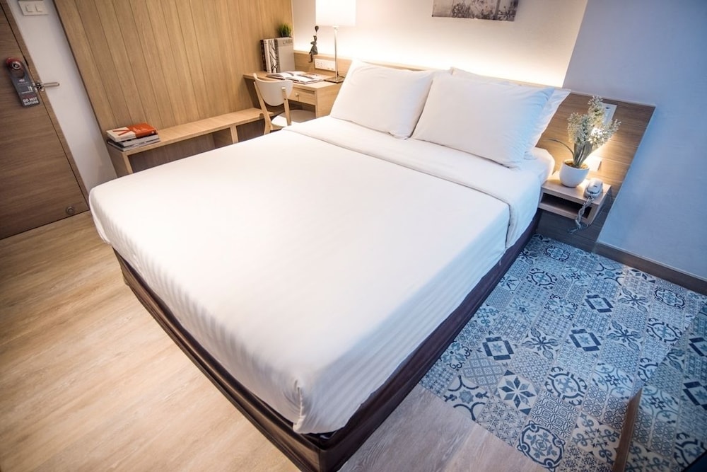 Остонавливались в Бангкоке на 3 дня с детьми, для посещения Сафари волд и Сиам парка, поэтому выбирала отель, чтобы не далеко было добираться до этих развлечений. Уходили из отеля в 8 утра и возвращались в 7-8 вечера - отель хороший для ночлега. Из минусов- маленький размер комнаты, неудобный душ, из плюсов- есть и кондер и вентилятор, кофе и кипяток на ресепшине бесплатно, шампунь и гель для душа, полотенца, тапочки. Добирались до выше указанных парков минут за 10 на такси за 60-80 батт, за те же деньги до торгового центра Фешин исланд. При поездке в такси обязательно держите в руках тел или планшен с гугл картами и следите за маршрутом, иначе могут возить кругами, чтобы денег содрать