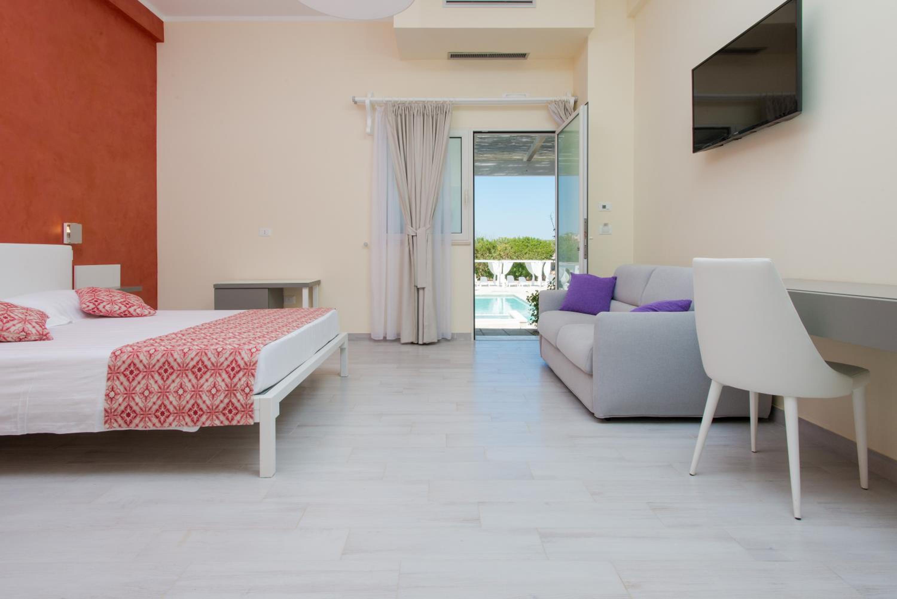 Unwind in the lush gardens or on the sun terrace, or venture out to explore the area. Benefit from complimentary shaded parking and a convenient shuttle service to Presicce Train Station.