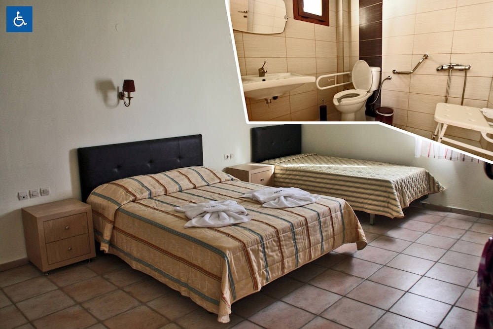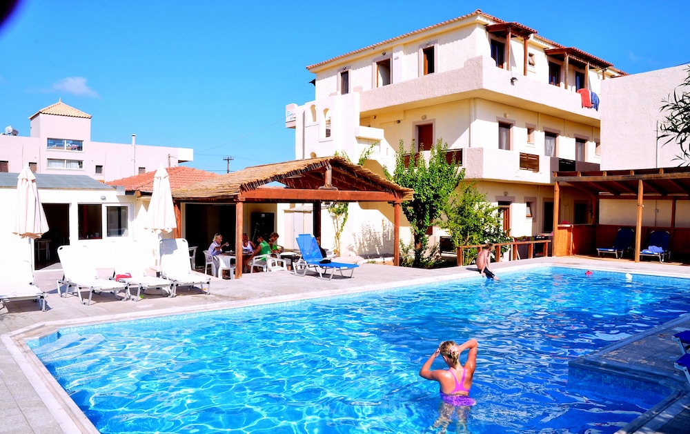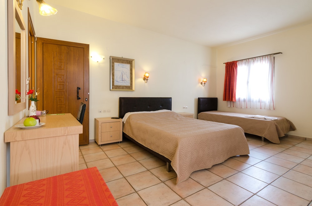 Che dista circa 20km dall’aeroporto di Heraklion. Le strade che portano all’hotel sono tutte poco illuminate ma purtroppo è una particolarità della zona. Arrivati sul posto abbiamo trovato la proprietaria dell’hotel che ci stava aspettando per darci le chiavi della camera, una camera molto spaziosa al piano terra. L’hotel è davvero molto bello e caratteristico, con una bella piscina e zona sdraio. La colazione è molto abbondante e ogni giorno si possono trovare waffle preparati al momento! L’hotel è ubicato a 3 minuti dalla spiaggia e dal centro di Annisaras (pieno di bar, market e car rental) e a 10 minuti dal centro di Hereonissos. La zona è molto tranquilla e rilassante, super consigliato soprattutto alle famiglie.