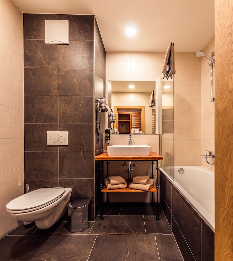 We were prettey disapointed and wont come back to this hotel. The door between our room and next room did not have a lock at all and we had to secure it with a chair, we adressed this to the reception, no reaction. They could not provide the bathrobes in 3 days we have stayed there (wellness hotel?), there was no drinking watter in the wellness area in all the times we have been there. The watter in our shower was freezing cold between 16:30 and 18:30 every day. We would not open the window for fresh are most of the time due to smoke from people smoking outside entrance. No near a 4 star hotel.