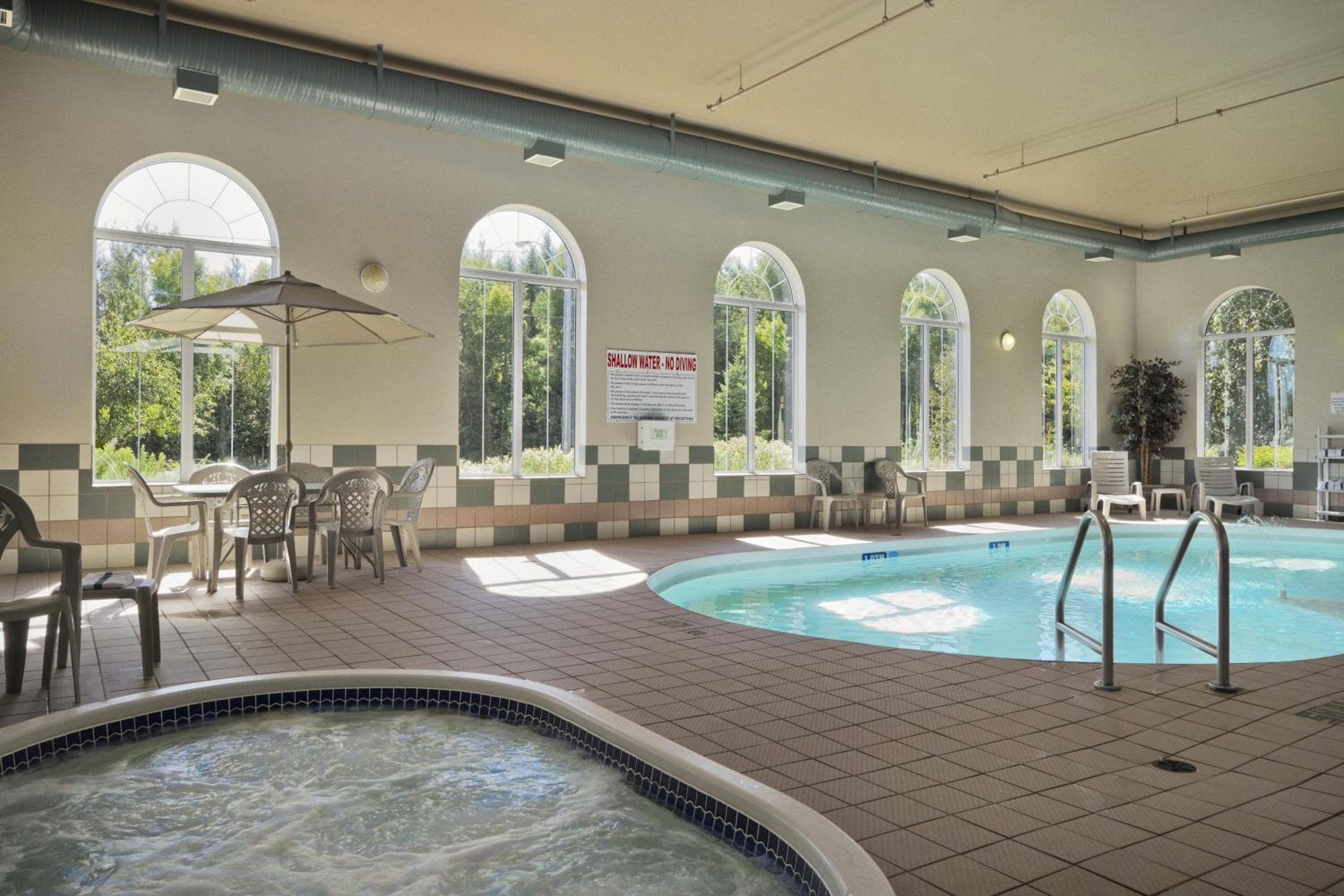 Indulge in our indoor pool, hot tub, and complimentary WiFi for a relaxing stay. Each room is equipped with modern comforts like air conditioning and a flat-screen TV for your enjoyment.