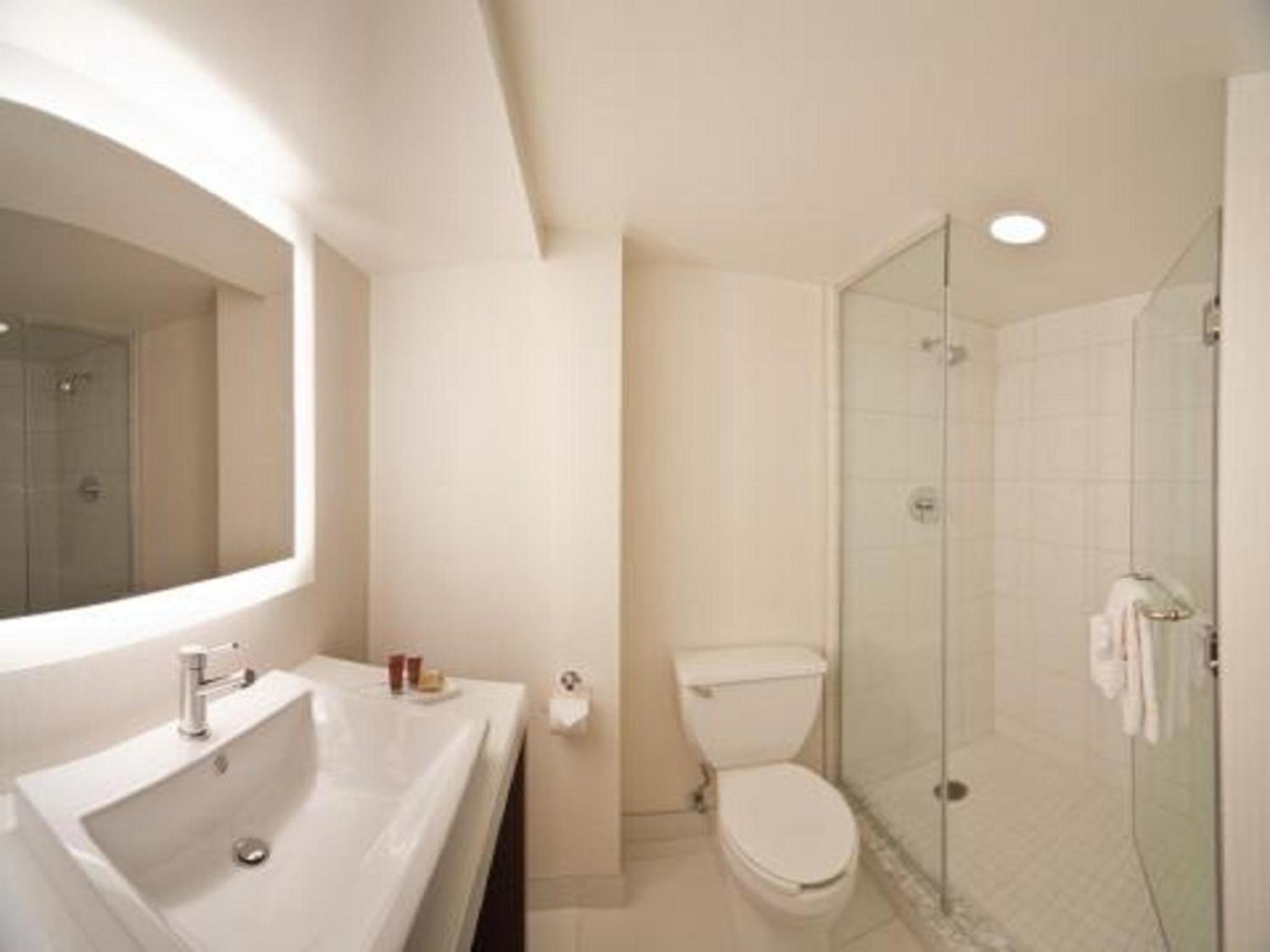 Bathroom was updated & clean. Location to my event was good.