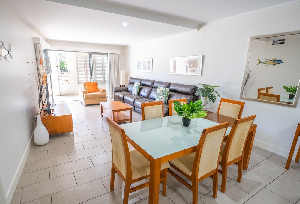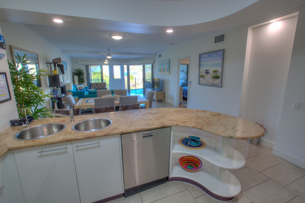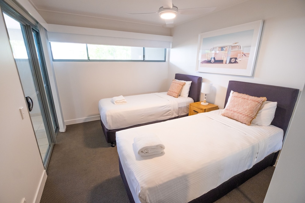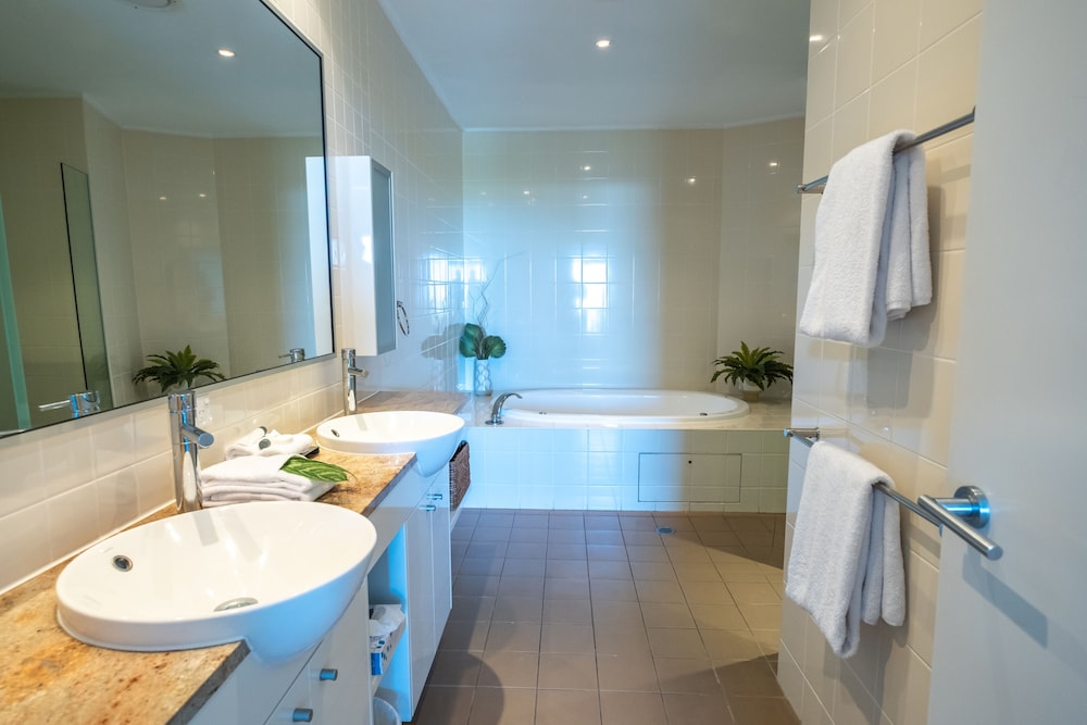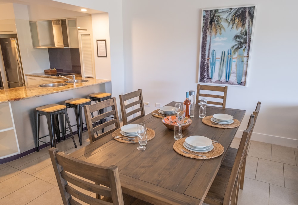 Property was excellent, modern spacious and secure. Pools and surrounds were excellent. Easy access to the beach. Parking bay secure but somewhat tight access.