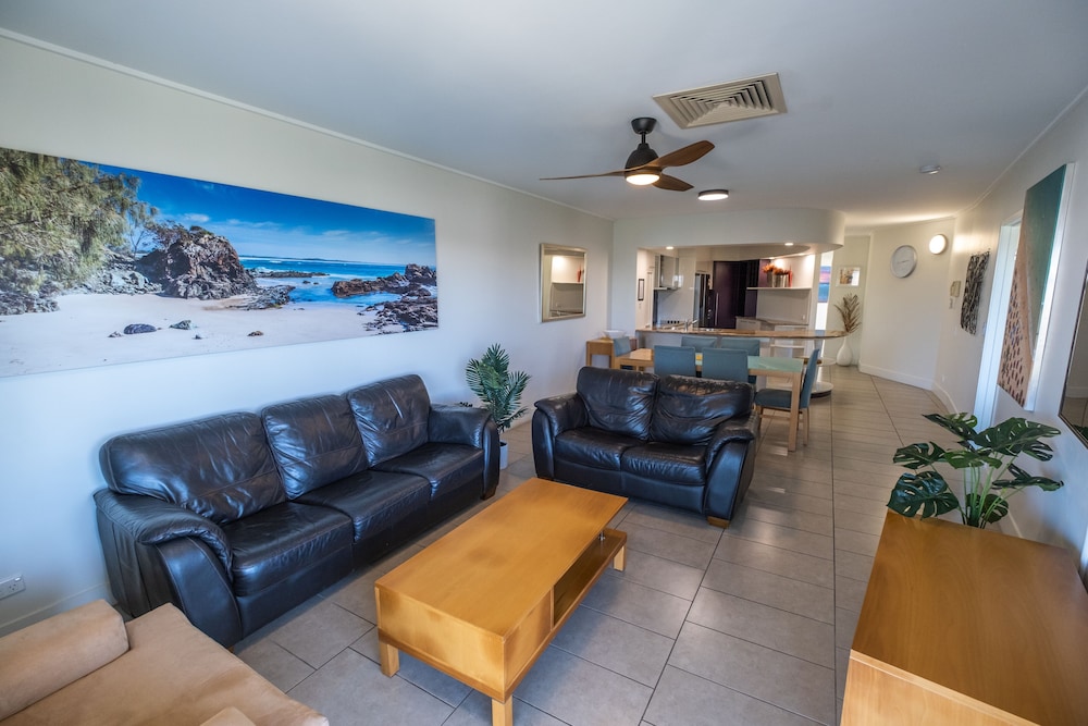 Located a bit away from the main part of Agnes Water, but close to the wonderful beach there. The apartment was spacious (though we got an upgrade to a 3 bedroomed top floor apartment which probably helped). There was a bit of a view of the sea from the balcony, but there are not really beachside properties here, so don’t expect a full ocean view anywhere. Apartment had everything necessary for our short stay.