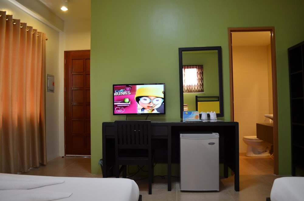 Its right on the beach, White beach , Station 1, its less crowded. There’s crystal kayak and paddle board you can hire right there. Walking distance to station 2 when on the beach and 100 pesos for four Etrike to DMall. Decent breakfast buffet included. Their restaurant its only a few feet from the sand and water. There’s reclining beach chairs you can sit and enjoy the shade under the coconut tress. Staff are nice and friendly. There’s free water jug in your room. Beach towels are provided .We didn’t know how to operate the TV but we’re mostly outside and on the water. Beds and linens are not the best but still got the best bang for my buck.