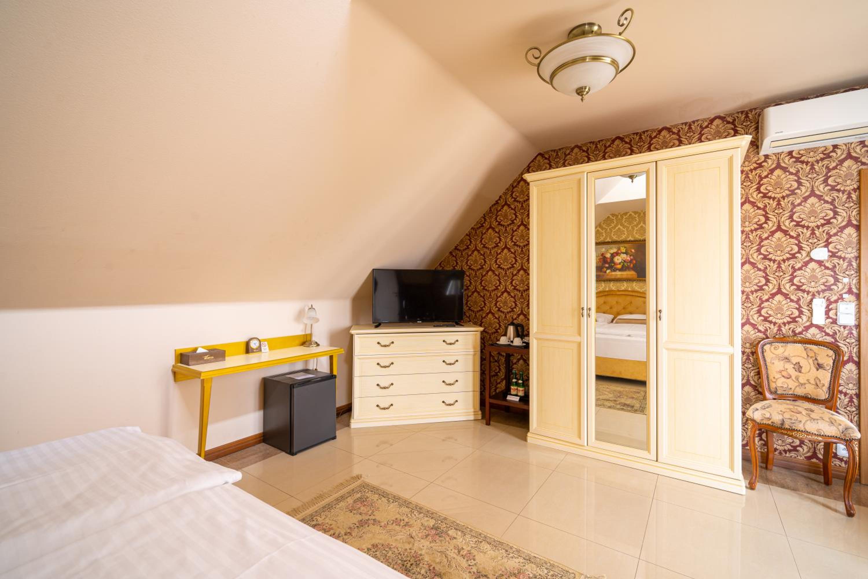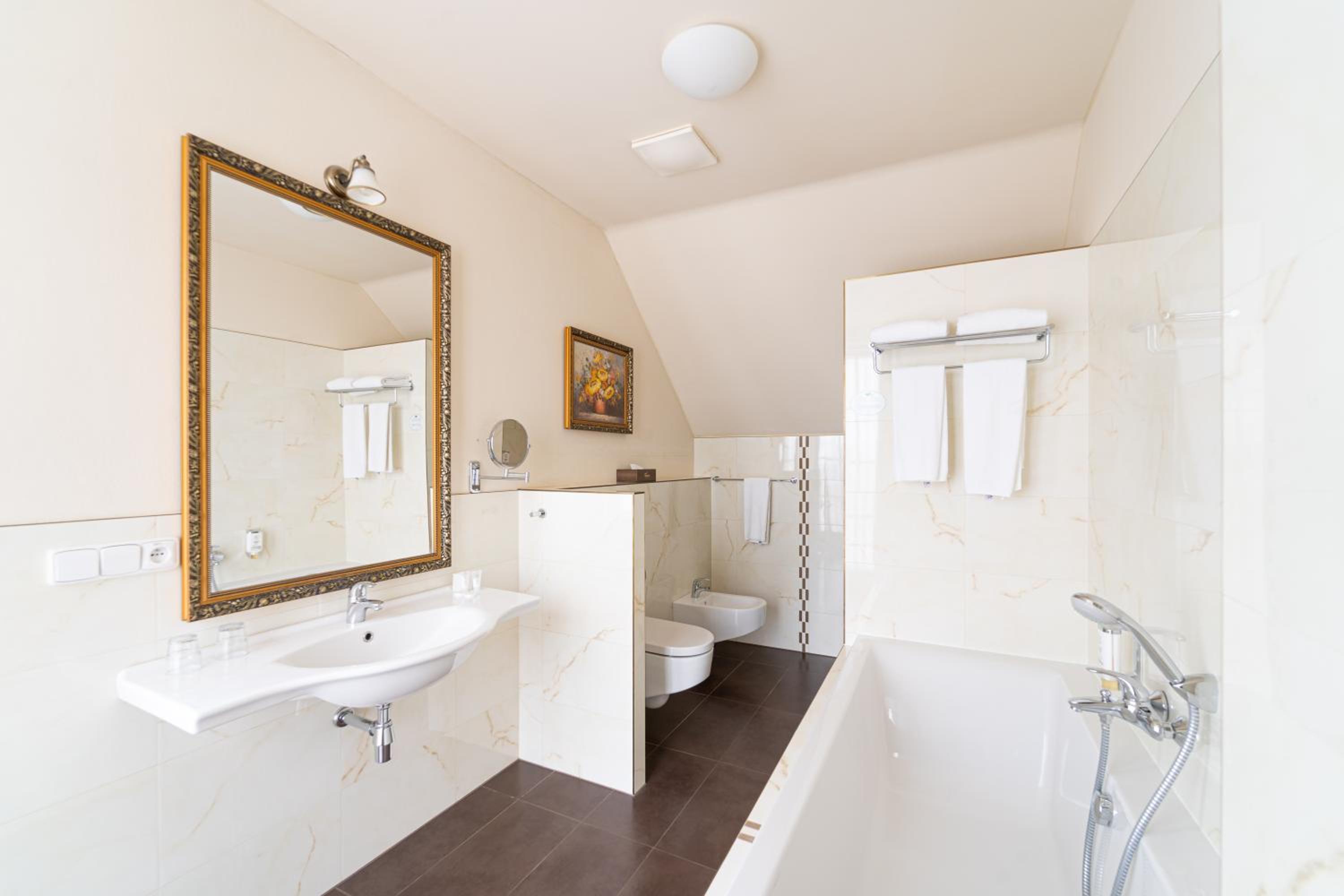 Each room at Spa Hotel Vita is elegantly furnished and equipped with modern amenities including flat-screen TVs and en-suite bathrooms. Guests can indulge in extras like air conditioning, spa baths, and spacious seating areas, ensuring a comfortable stay.