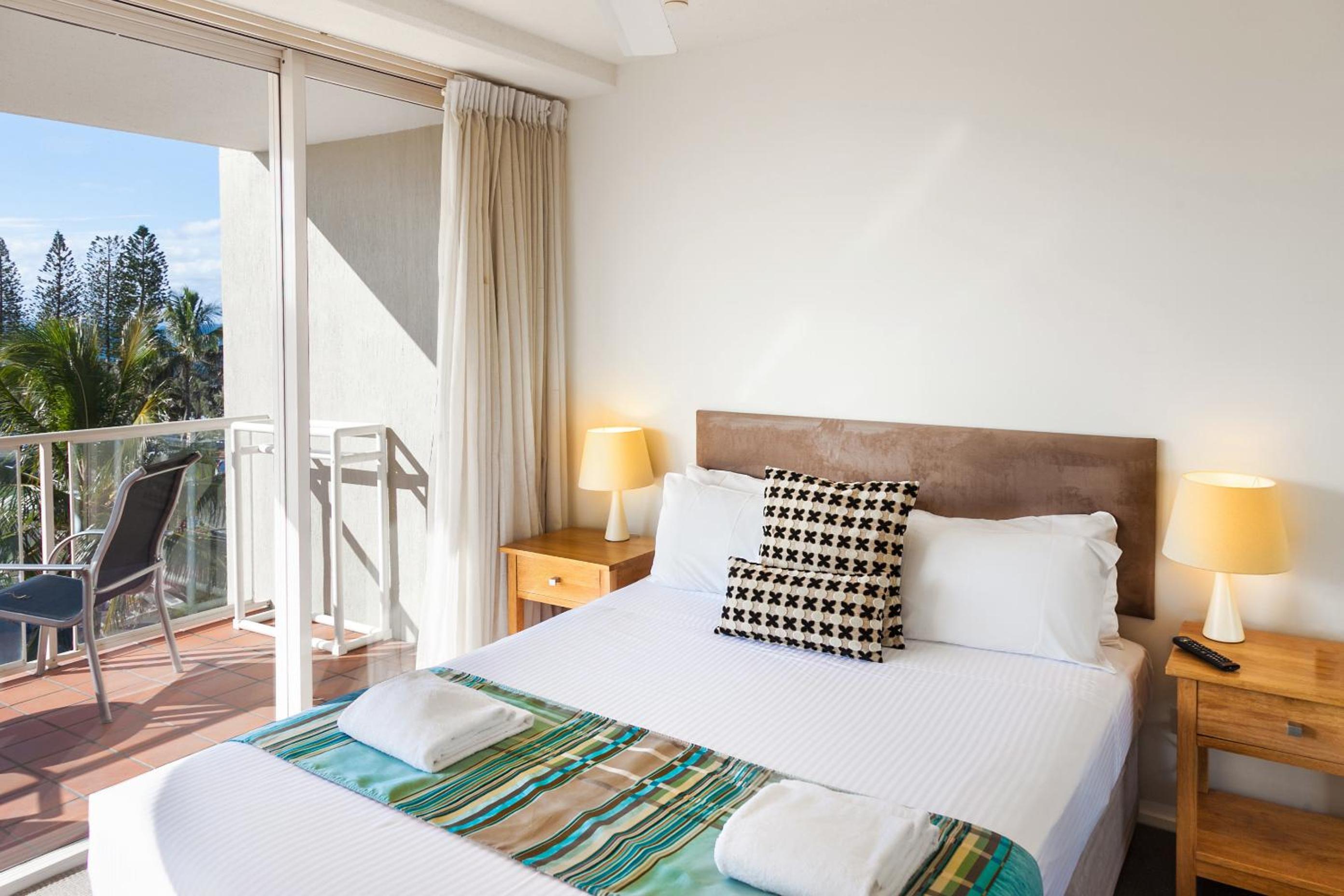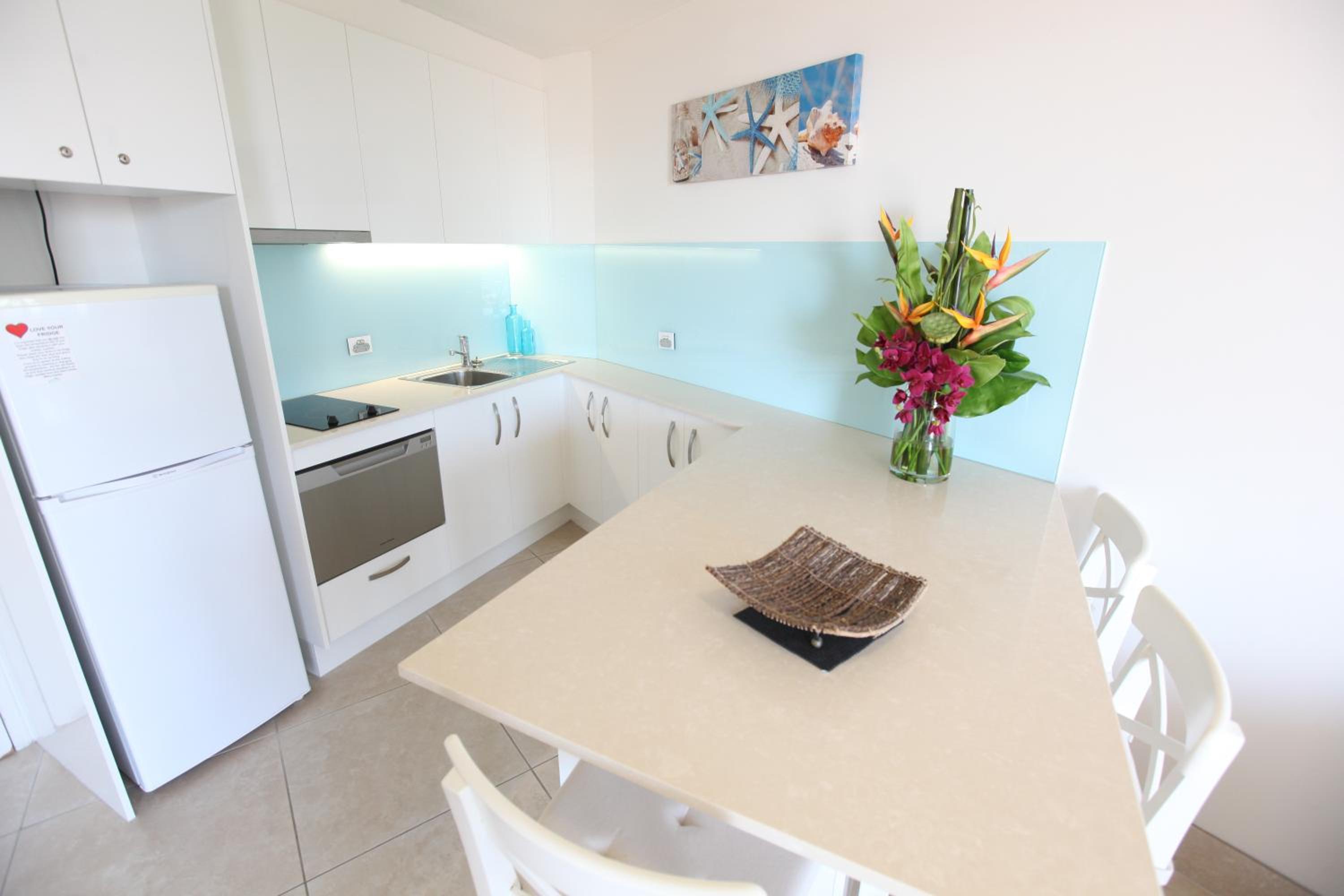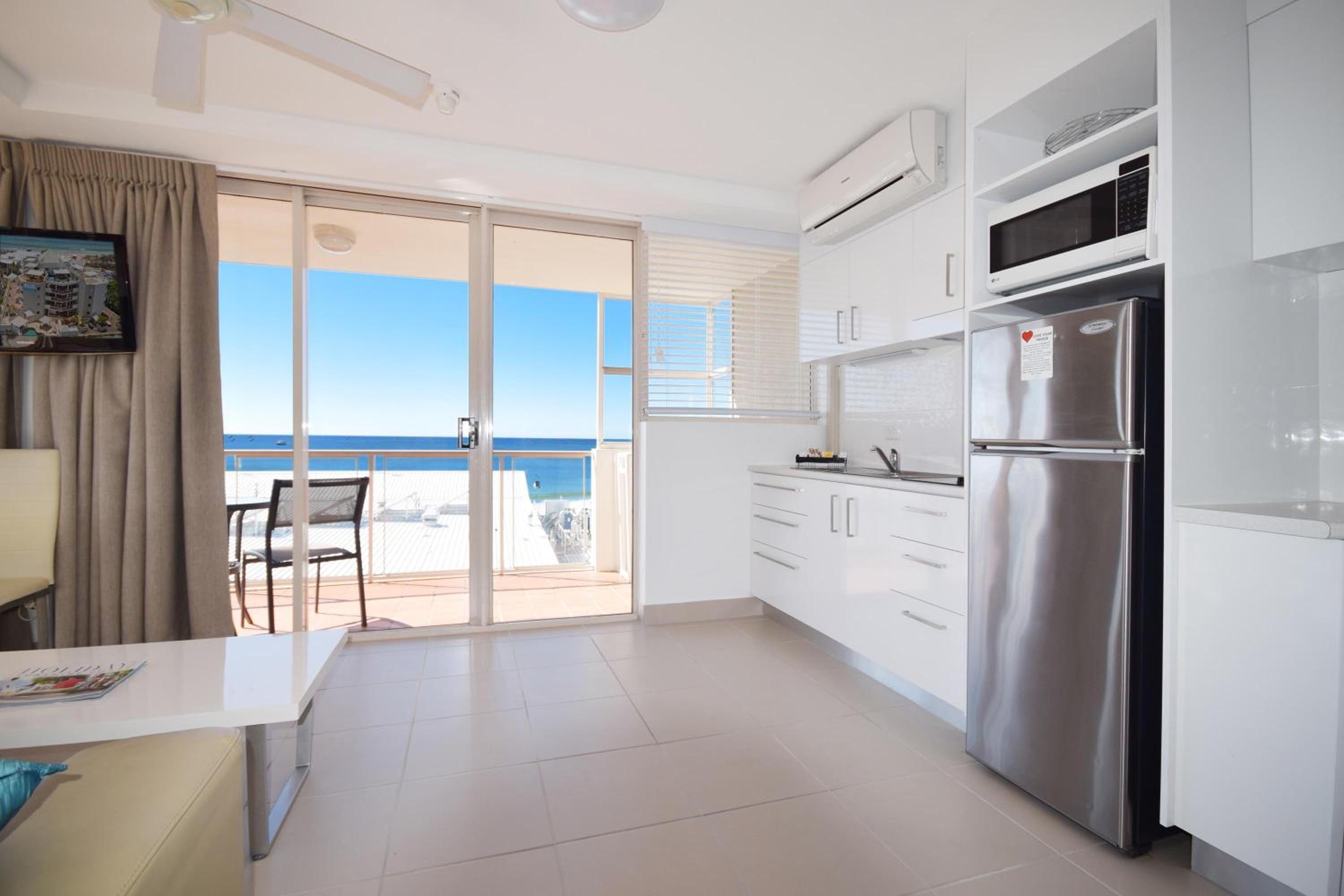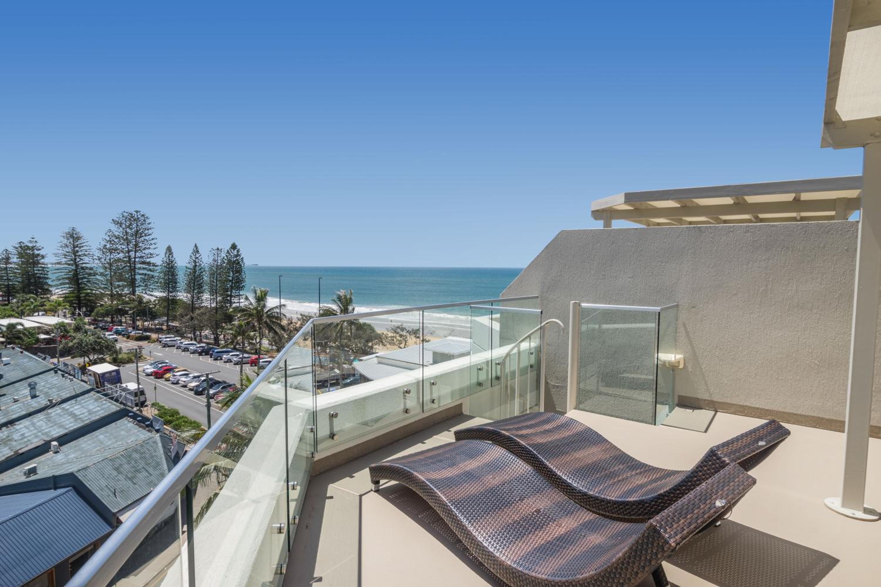 Sandcastles Mooloolaba offers beachfront 1-bedroom apartments with full kitchen and laundry facilities, some featuring private rooftop terraces with BBQs.