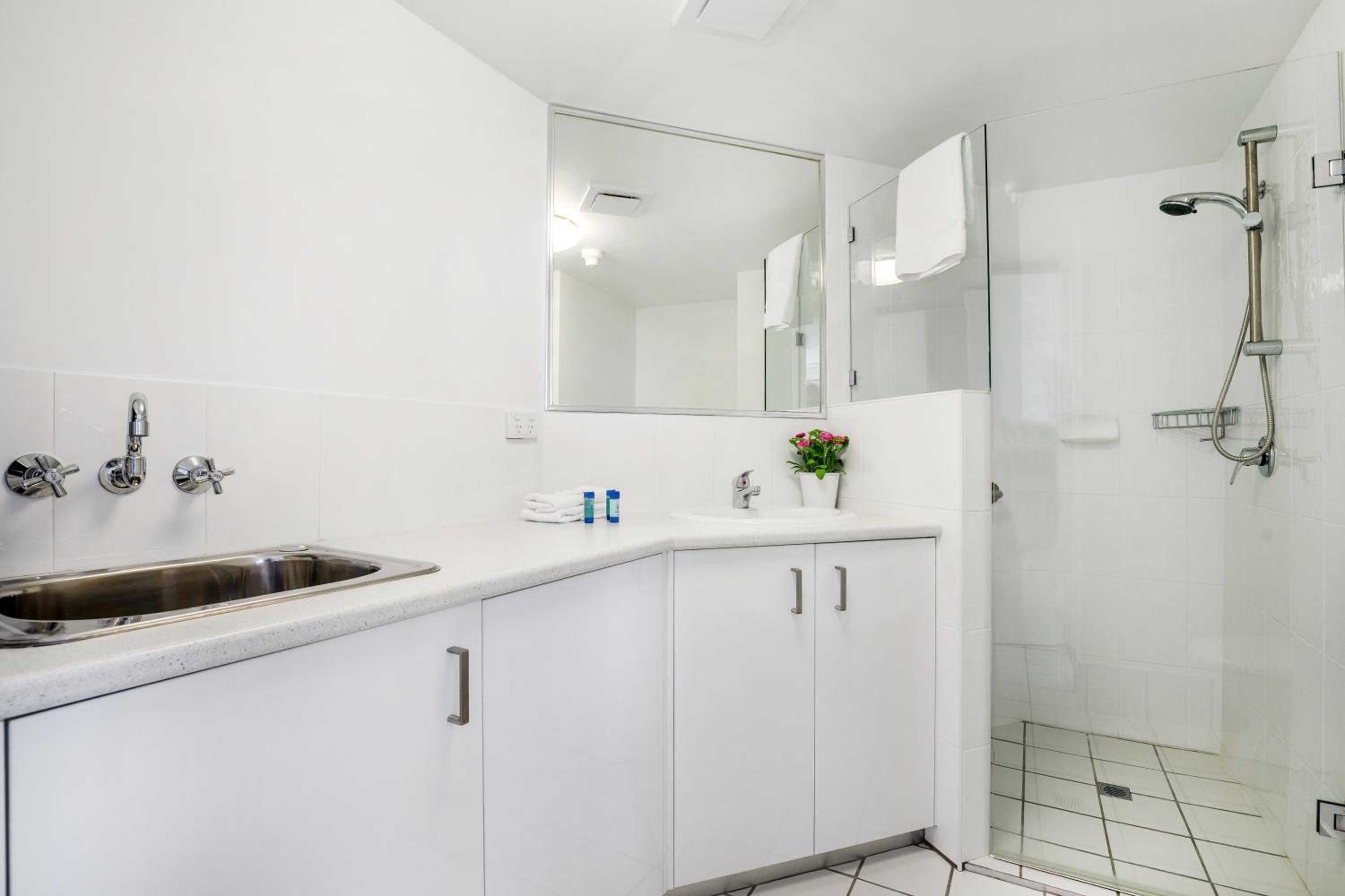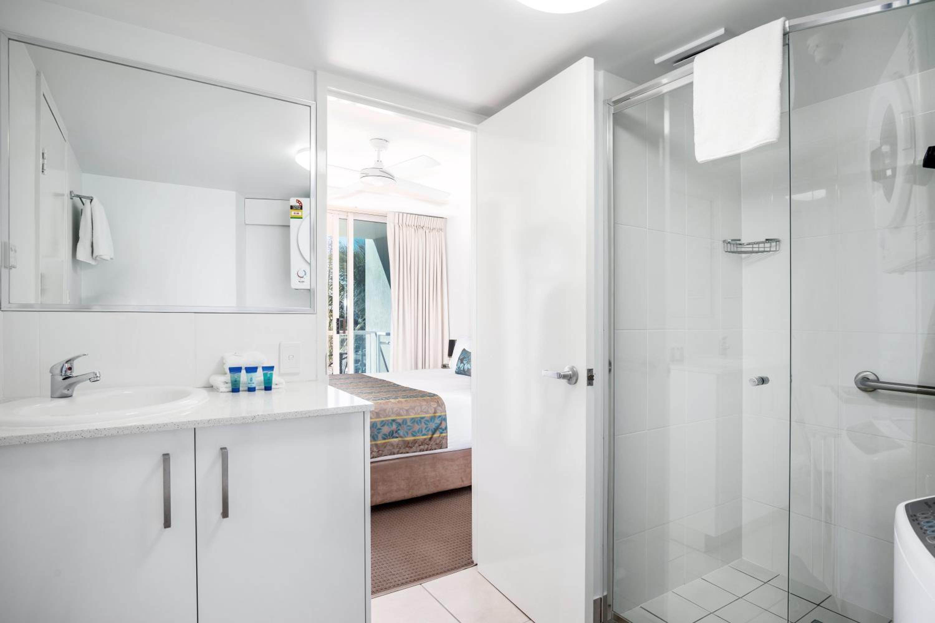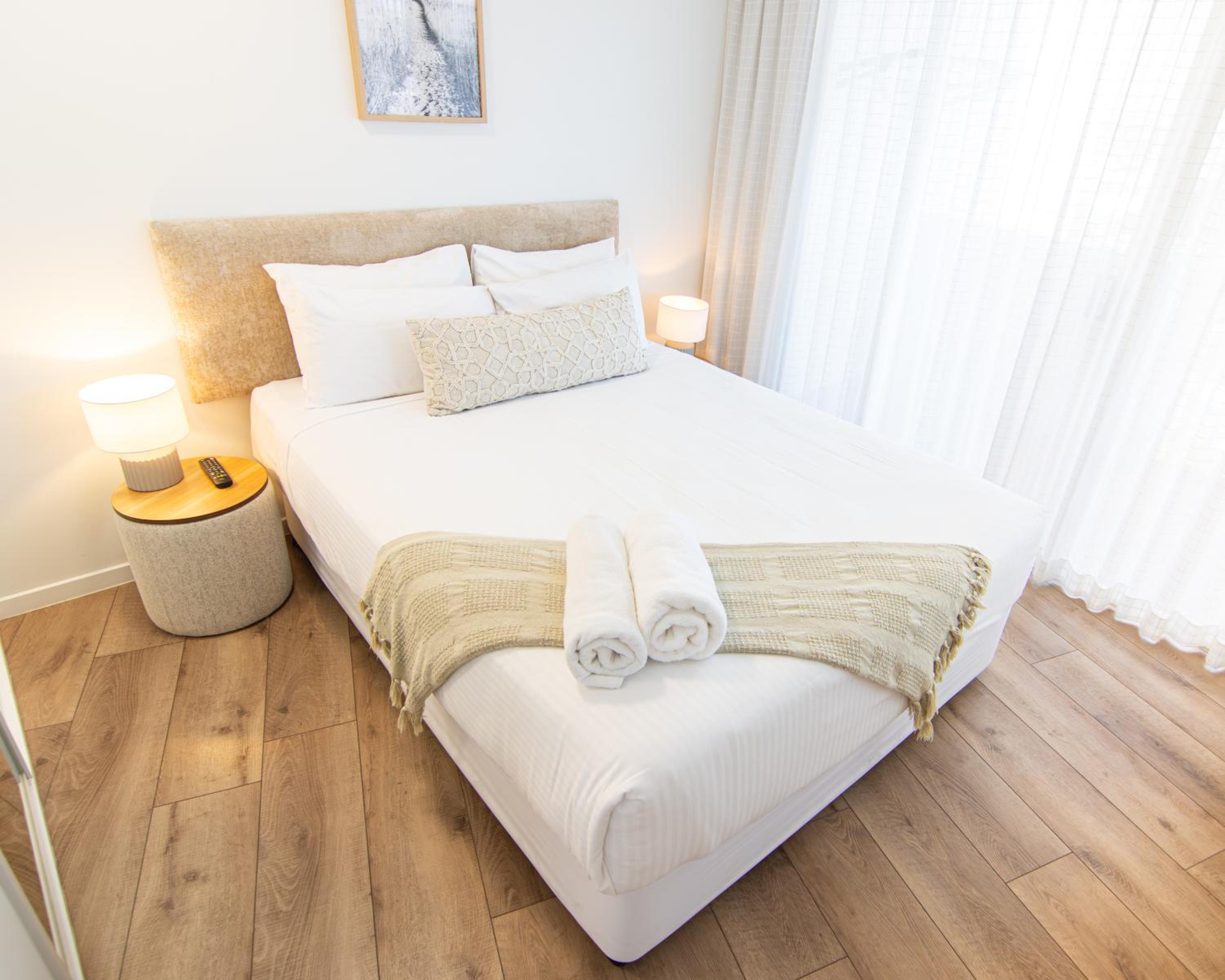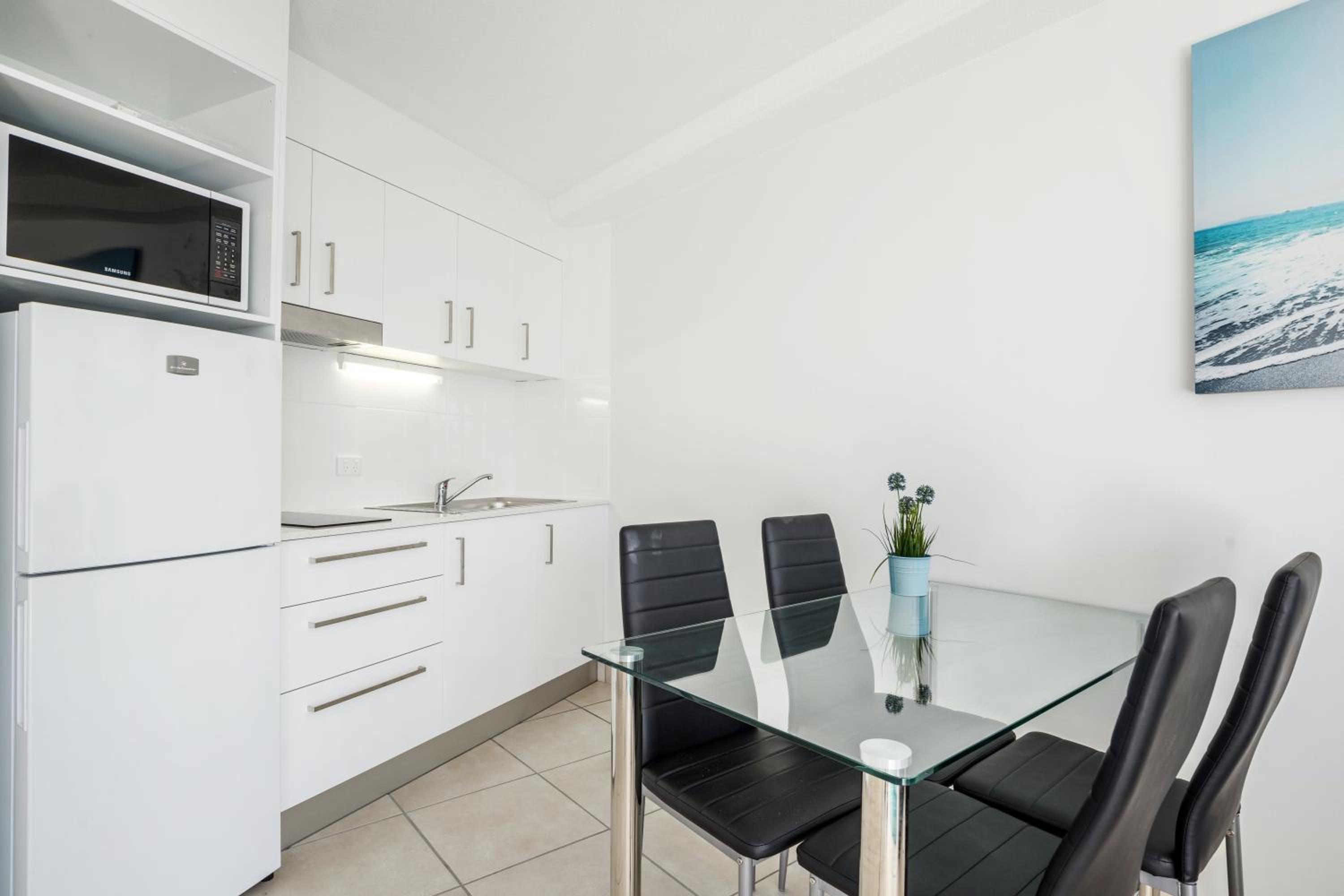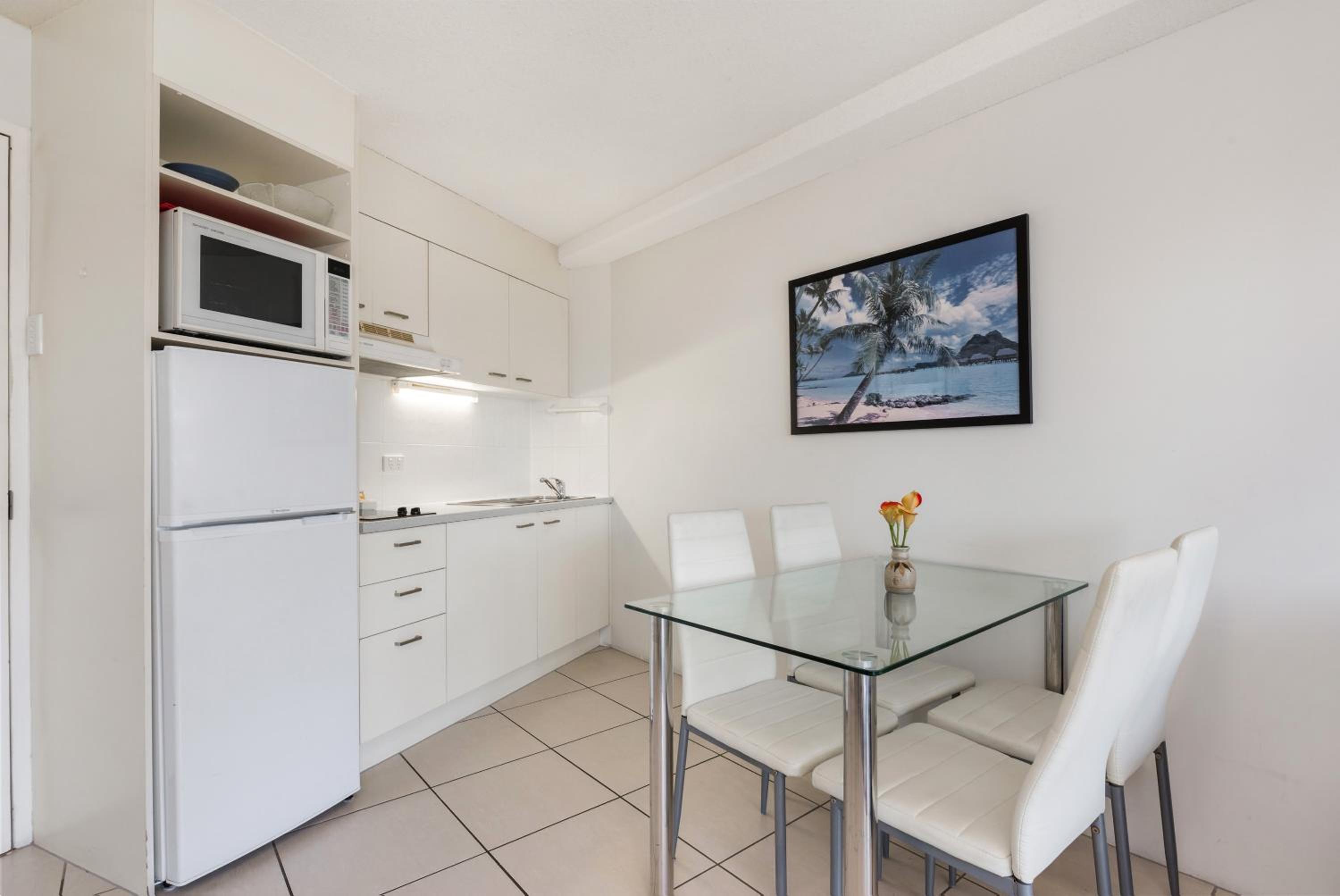 Sandcastles Mooloolaba offers beachfront 1-bedroom apartments with full kitchen and laundry facilities, some featuring private rooftop terraces with BBQs.