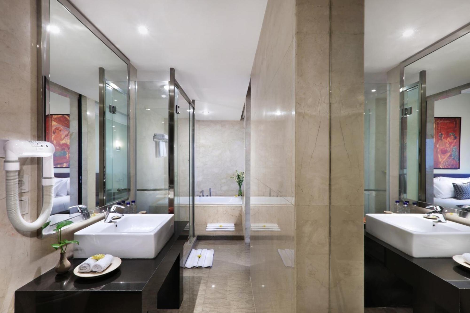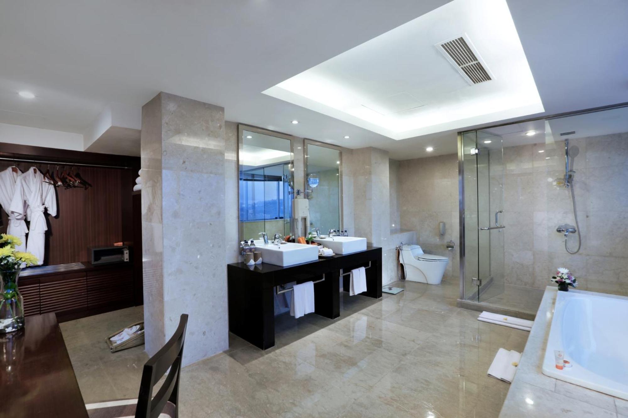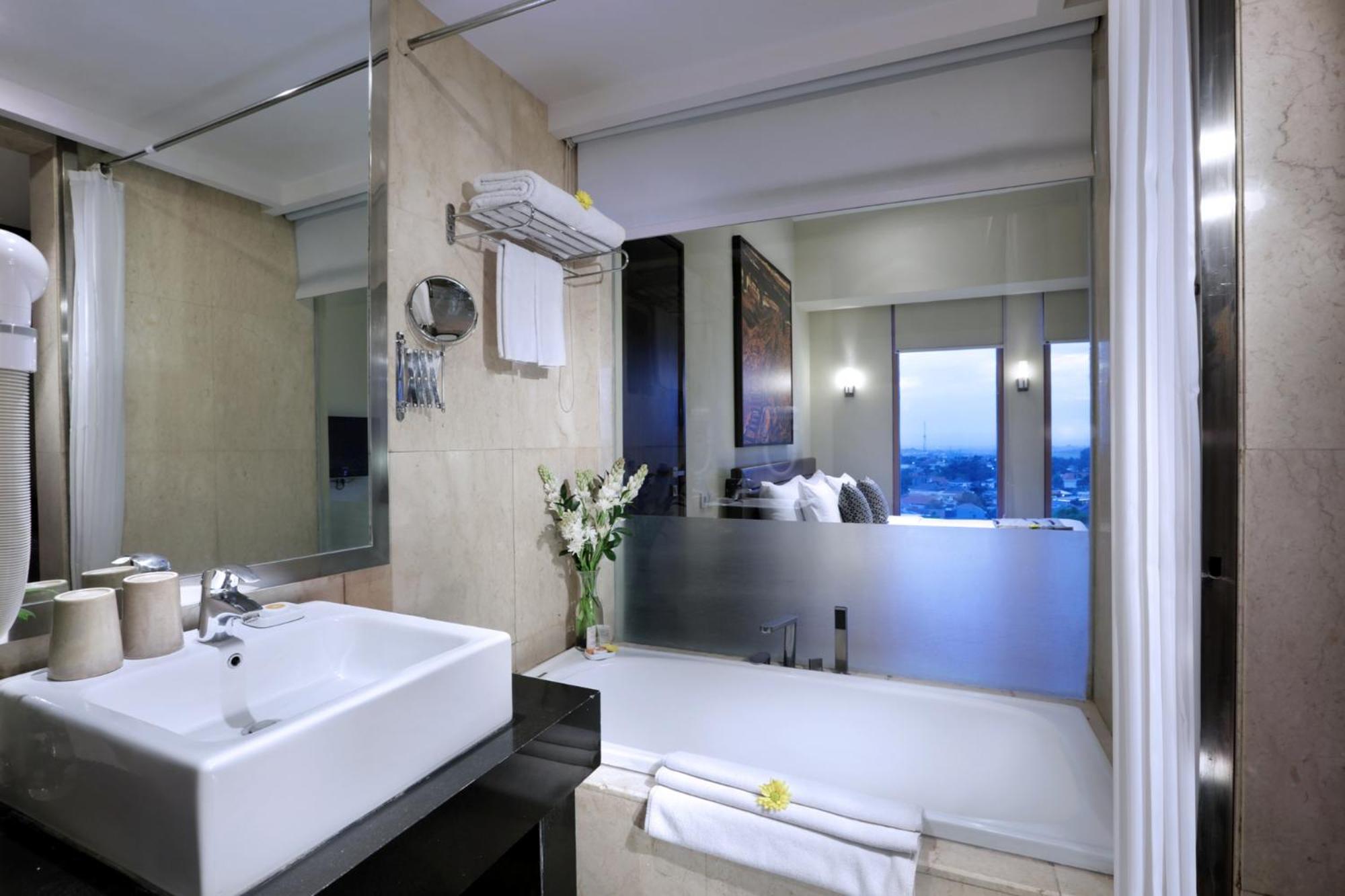 Grand Candi offers 5-star rooms with modern interiors, over-sized windows, and free internet. The air-conditioned rooms feature warm color schemes, local artwork, wooden flooring, and a flat-screen cable TV.