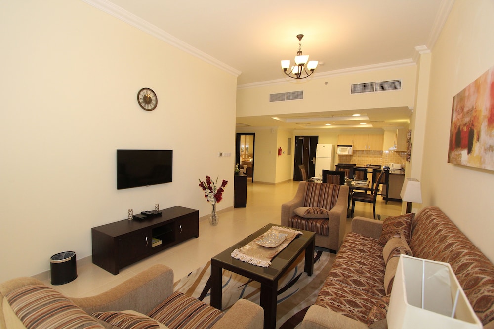 Amazing hotel highly recommended for families, we stayed a 2 bedroom apartment. My kids were playing in the living room as they if we they were at home. Beds were good, bathrooms were clean and the kitchen had everything we needed needed. Reception was excellent and service as well. Parking area in the basement is nice. Grocery delivery is near by and emirate mall is 5 min by walk. Only thing you need to remember is if your eating breakfast at the restaurant you need to wake up early to find a table before 9 am.